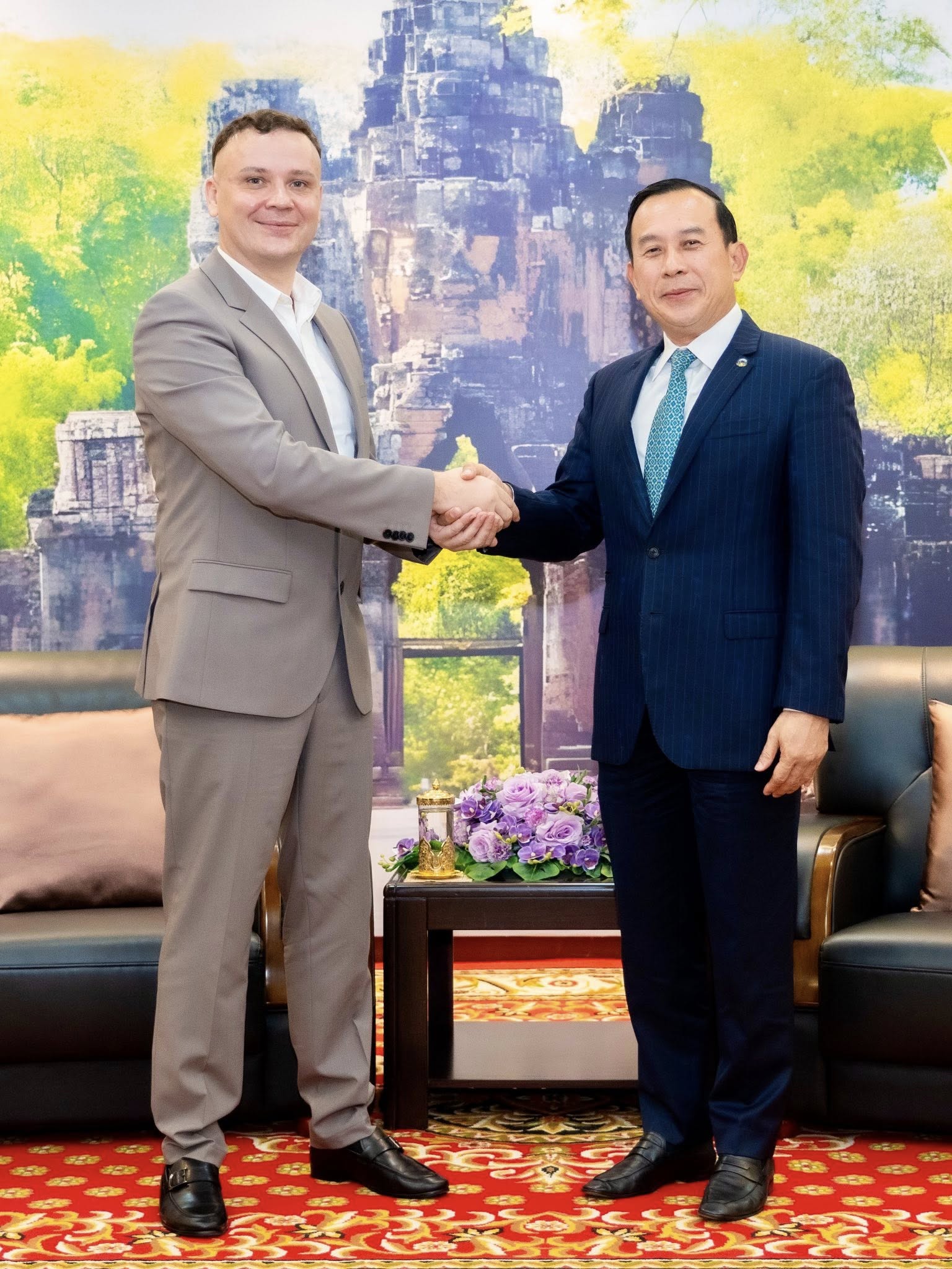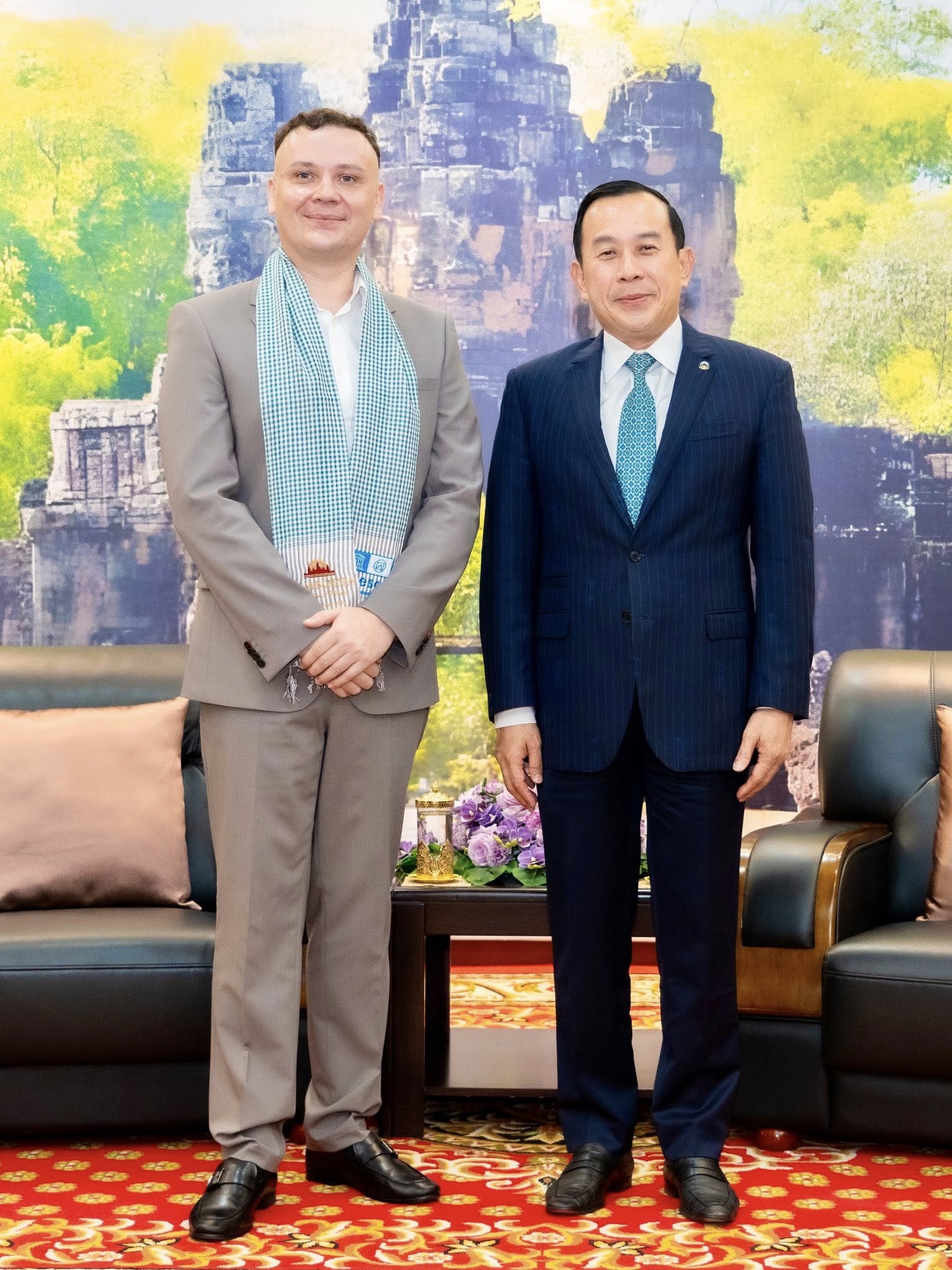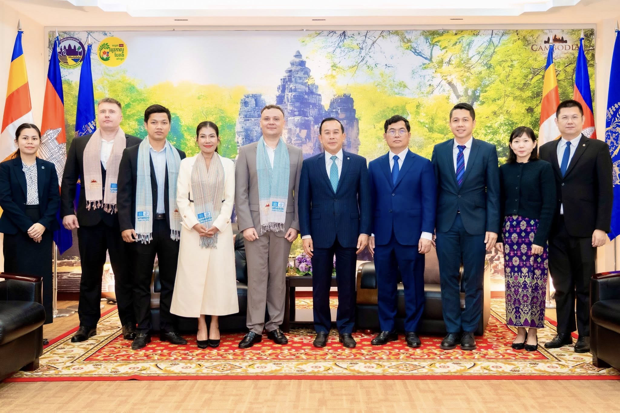 ភ្នំពេញ ៖ លោក Vladimir Palancica អគ្គនាយកក្រុមហ៊ុន Lotus Group និងជាប្រធានសាខា BRICS House រួមទាំងដៃគូវិនិយោគក្នុងស្រុក គឺក្រុមហ៊ុន JFT Jet តំណាងដោយលោកស្រី ខែក ខេមរ៉ាត់ ជាអគ្គនាយិកា ព្រមទាំងសហការី ចូលជួបសម្តែងការគួរសម រាយការណ៍ពីសកម្មភាពអាជីវកម្ម ទិសដៅ និងយុទ្ធសាស្រ្តក្នុងការទាក់ទាញទេសចរ និងអ្នកវិនិយោគរុស្ស៊ីព្រមទាំងពីសហគមន៍និយាយភាសារុស្សីមកកាន់ប្រទេសកម្ពុជា ជាមួយរដ្ឋមន្រ្តីក្រសួងទេសចរណ៍។
