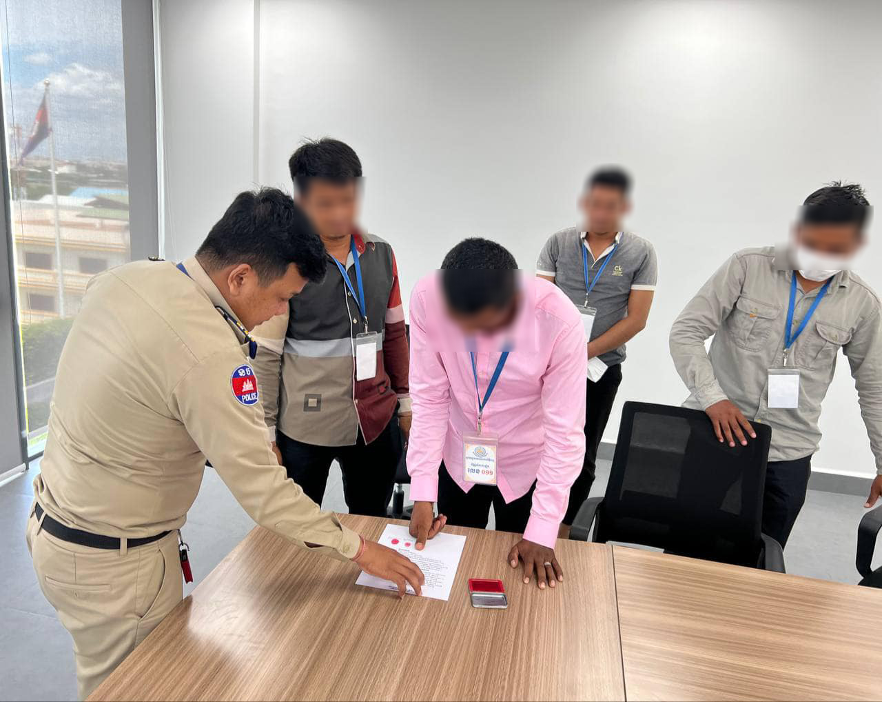 បន្ទាប់ពីកំណត់អត្តសញ្ញាណបានហើយនោះ លោកឧត្តមសេនីយ៍ទោ ប៊ុន សុសិក្ខា ស្នងការរងទទួលការងារផែនសន្តិសុខ នៅថ្ងៃទី១៣ ខែកក្កដា ឆ្នាំ២០២៣នេះ បានកោះហៅបុរសទាំង៤នាក់នោះ មកធ្វើការសួរនាំ។ អ្នកទាំង៤នោះរួមមាន៖ ទី១៖ ឈ្មោះ មិន សុជាតិ អាយុ៣៧ឆ្នាំ, ទី២៖ ឈ្មោះ កែវ សុវណ្ណូរ៉ា អាយុ៣៤ឆ្នាំ, ទី៣៖ ឈ្មោះ សោប ចាន់ធូ អាយុ៣០ឆ្នាំ និងទី៤៖ ឈ្មោះ អ៉ិត ស៊ុនណាត អាយុ៣៤ឆ្នាំ។