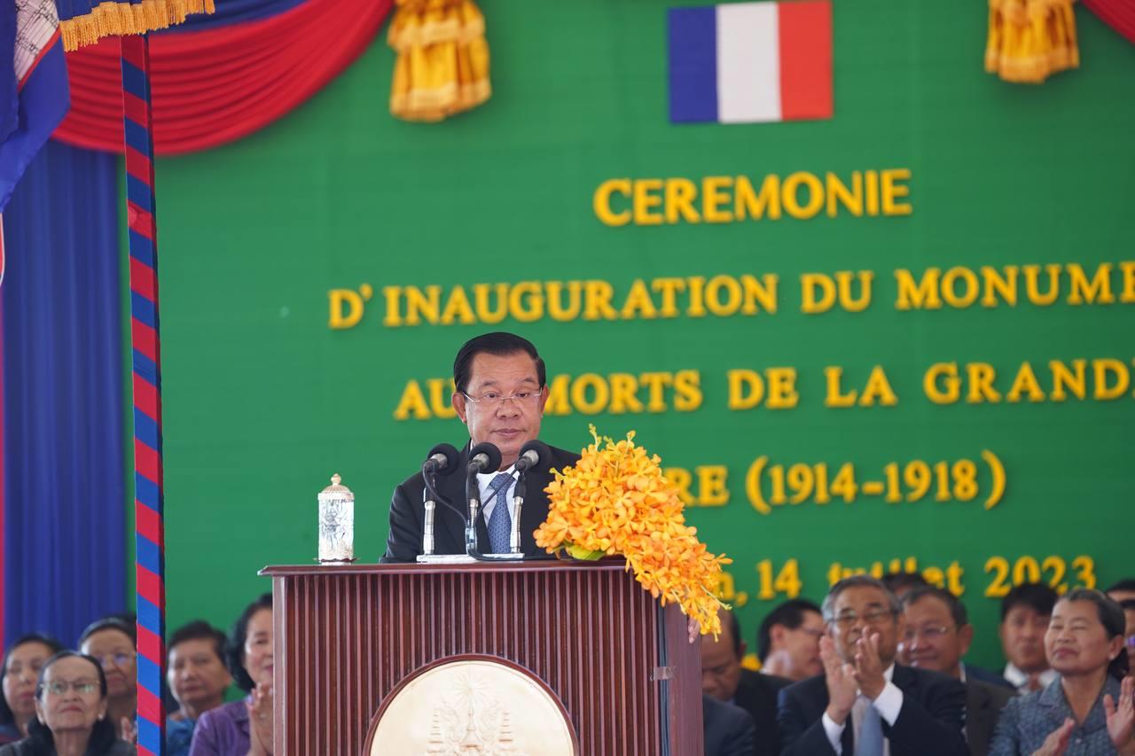 (ភ្នំពេញ)៖ ថ្លែងក្នុងឱកាសអញ្ជើញសម្ពោធដាក់វិមានរំលឹកដល់អ្នកទទួលអនិច្ចកម្មក្នុងសង្គ្រាមលោកលើកទី១ ពីឆ្នាំ១៩១៤ ដល់ឆ្នាំ១៩១៨ នាព្រឹកថ្ងៃទី១៤ ខែកក្កដា ឆ្នាំ២០២៣នេះ សម្តេចតេជោ ហ៊ុន សែន នាយករដ្ឋមន្ត្រីនៃកម្ពុជា បានប្រកាសអនុញ្ញាតជូនស្ថានឯកអគ្គរដ្ឋទូតនៃសាធារណរដ្ឋបារាំង ប្រើប្រាស់វិមានមួយនេះរៀបចំពិធីរំលឹកខួបអនុស្សាវរីយ៍ថ្ងៃបញ្ចប់សង្រ្គាមលោកលើកទី១ និងពិធីផ្សេងៗទៀតបាន។