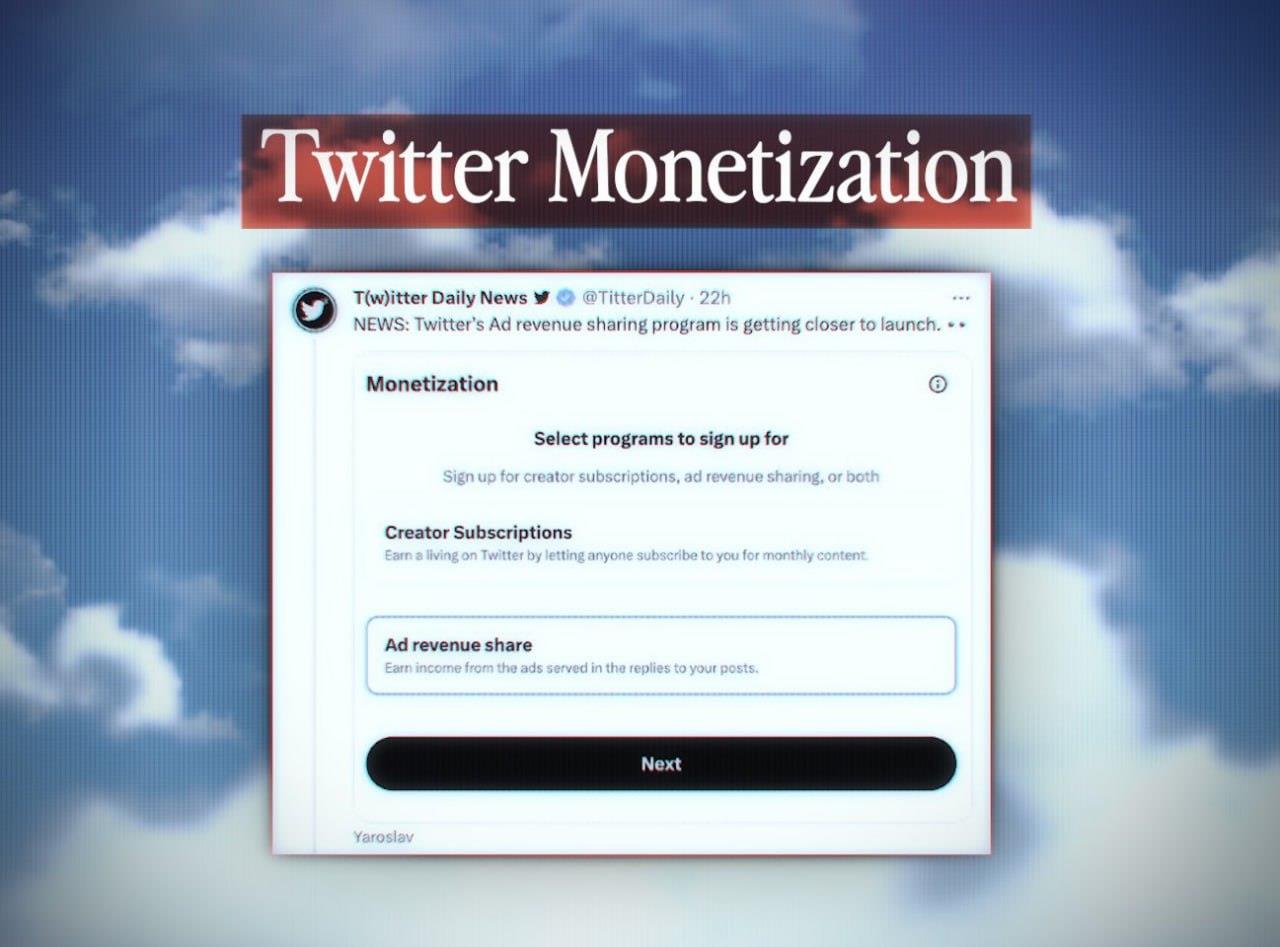 នេះជាលើកទី១ ហើយដែល Twitter អនុញ្ញាតឱ្យអ្នកផលិតមាតិកា នៅលើបណ្តាញផ្សព្វផ្សាយសង្គមរបស់ខ្លួនអាចរកចំណូលបានតាមរយៈការដាក់ផ្សាយពាណិជ្ជកម្ម។ យោងតាមការជូនដំណឹងពី Twitter នៅថ្ងៃសុក្រសប្តាហ៍នេះបានឱ្យដឹងថា សម្រាប់អ្នកផលិតមាតិកានៅលើ Twitter ដែលបានបំពេញគ្រប់គោលការណ៍នឹងមានអ្នកទស្សនាតិចបំផុត ៥លាននាក់ (5M) ក្នុងរយៈពេល ៣ខែចុងក្រោយនេះនឹងអាចរកប្រាក់តាមរយៈការដាក់ផ្សាយពាណិជ្ជកម្មបានហើយ។