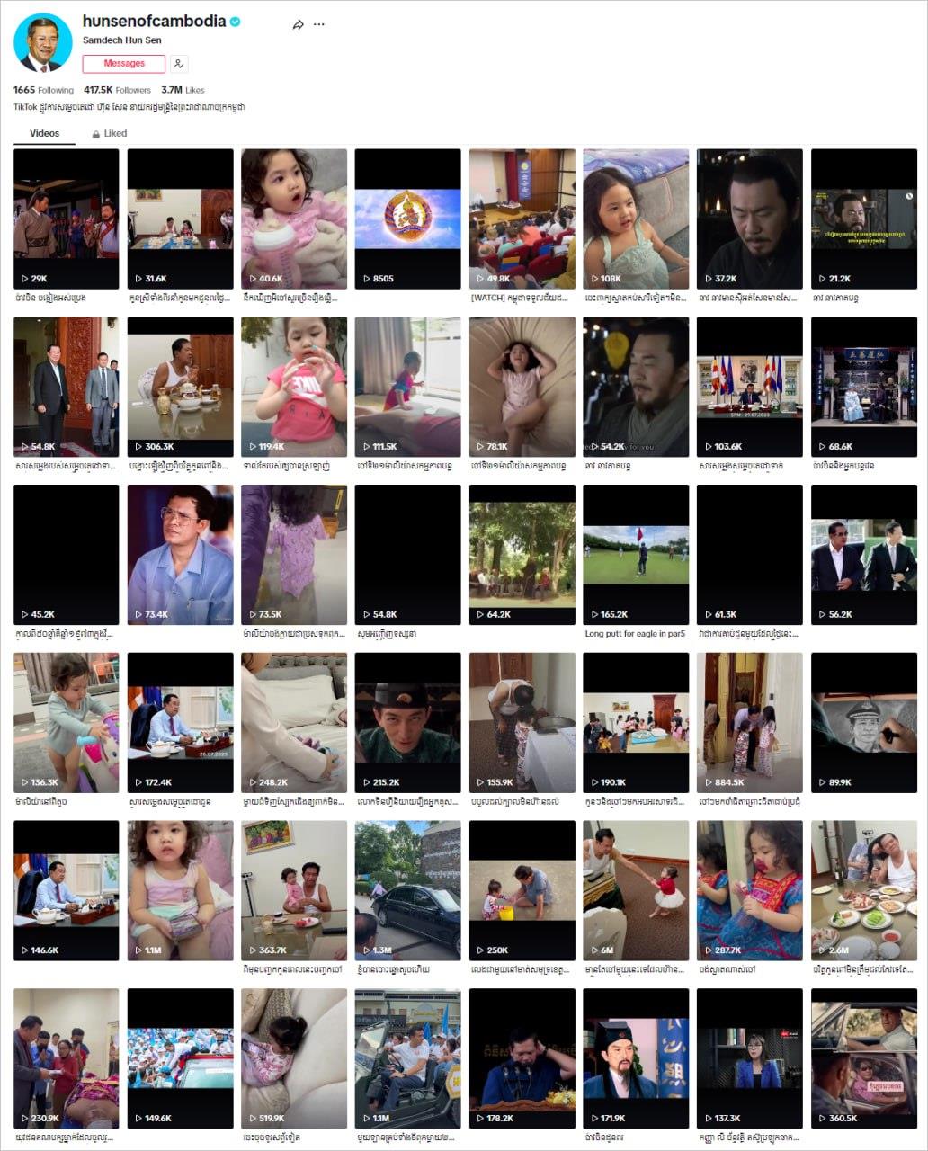 សម្រាប់ TikTok របស់សម្តេចតេជោ មិនដល់រយៈពេលមួយខែផង បានកើនដល់ពេលនេះ គិតត្រឹមថ្ងៃទី០២ សីហា ឆ្នាំ២០២៣ មានចំនួន 417.5K Followers មានអ្នក Likes 3.7M ។ ក្នុងនោះគ្រាន់តែវិដេអូសម្តេចតេជោ ជាមួយចៅស្រី មានអ្នកមើលរហូតដល់ 6M និងមានអ្នកចុចបេះដូងជិត កន្លះលាននាក់។ TikTok របស់សម្តេចតេជោ ហ៊ុន សែន មានតំណភ្ជាប់ https://www.tiktok.com/@hunsenofcambodia។