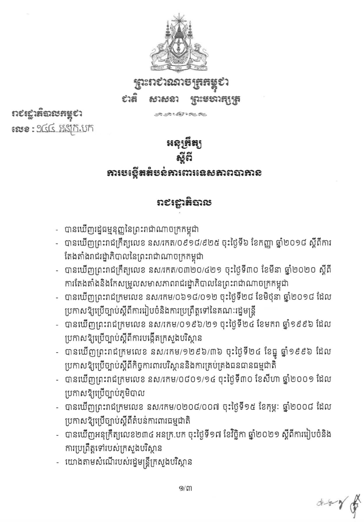 ការបង្កើតអនុក្រឹត្យនេះ មានគោលបំណងដូចតទៅ៖