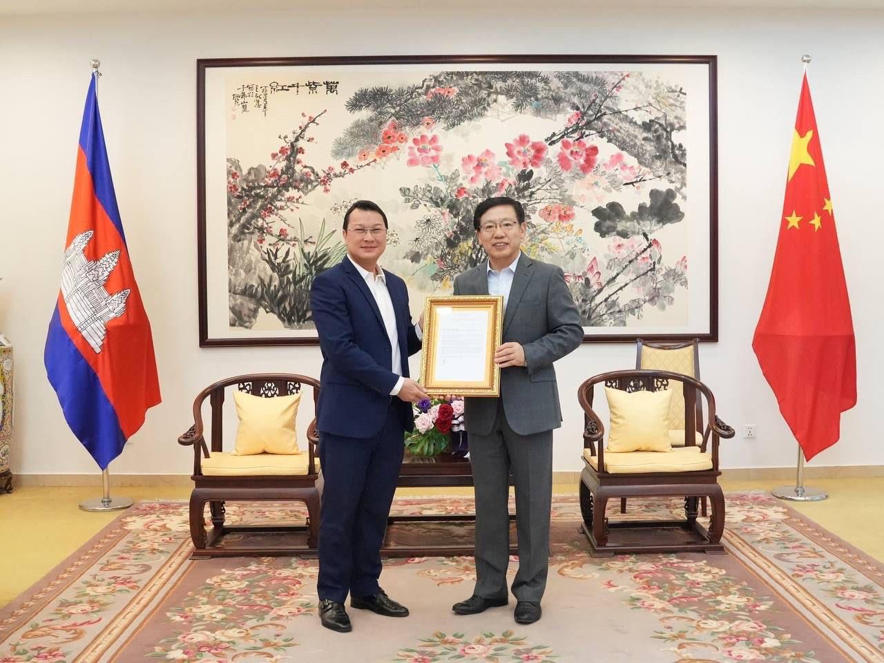 សម្ដេចតេជោ ហ៊ុន សែន ជូនដើមអង្គាបុស្បដល់ឯកអគ្គរដ្ឋទូតចិននៅកម្ពុជា សម្រាប់ដាំក្នុង «សួនមិត្តភាពចិន-កម្ពុជា» អបអរខួបលើកទី៦៥ នៃការបង្កើតទំនាក់ទំនងប្រទេសទាំងពីរ
