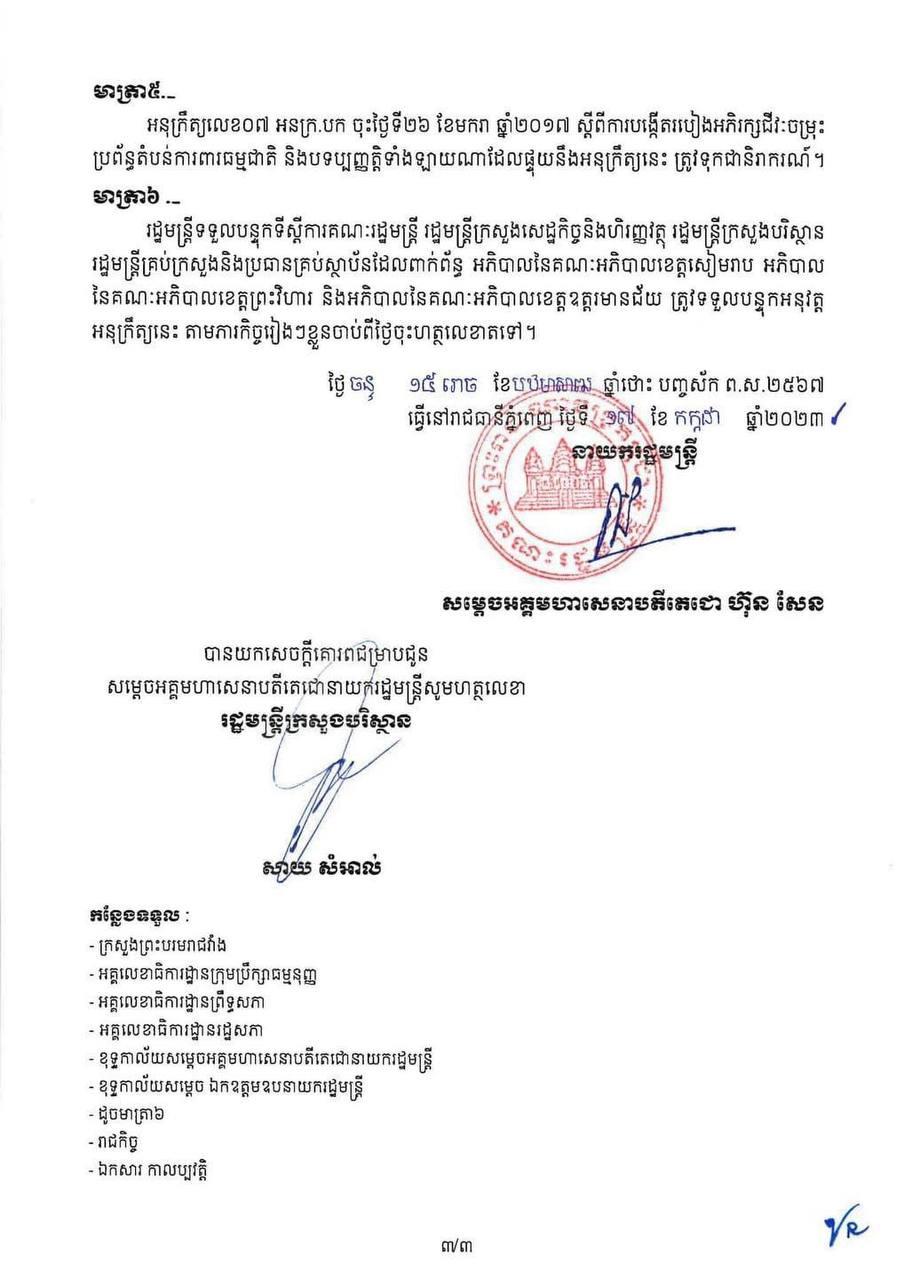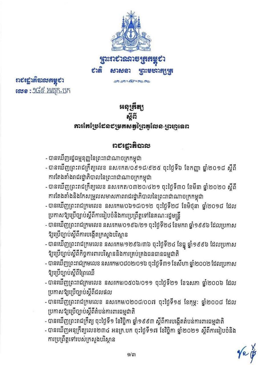 ខាងក្រោមនេះ ជាអនុក្រឹត្យរបស់រាជរដ្ឋាភិបាល ដែលមានខ្លឹមសារទាំងស្រុង៖