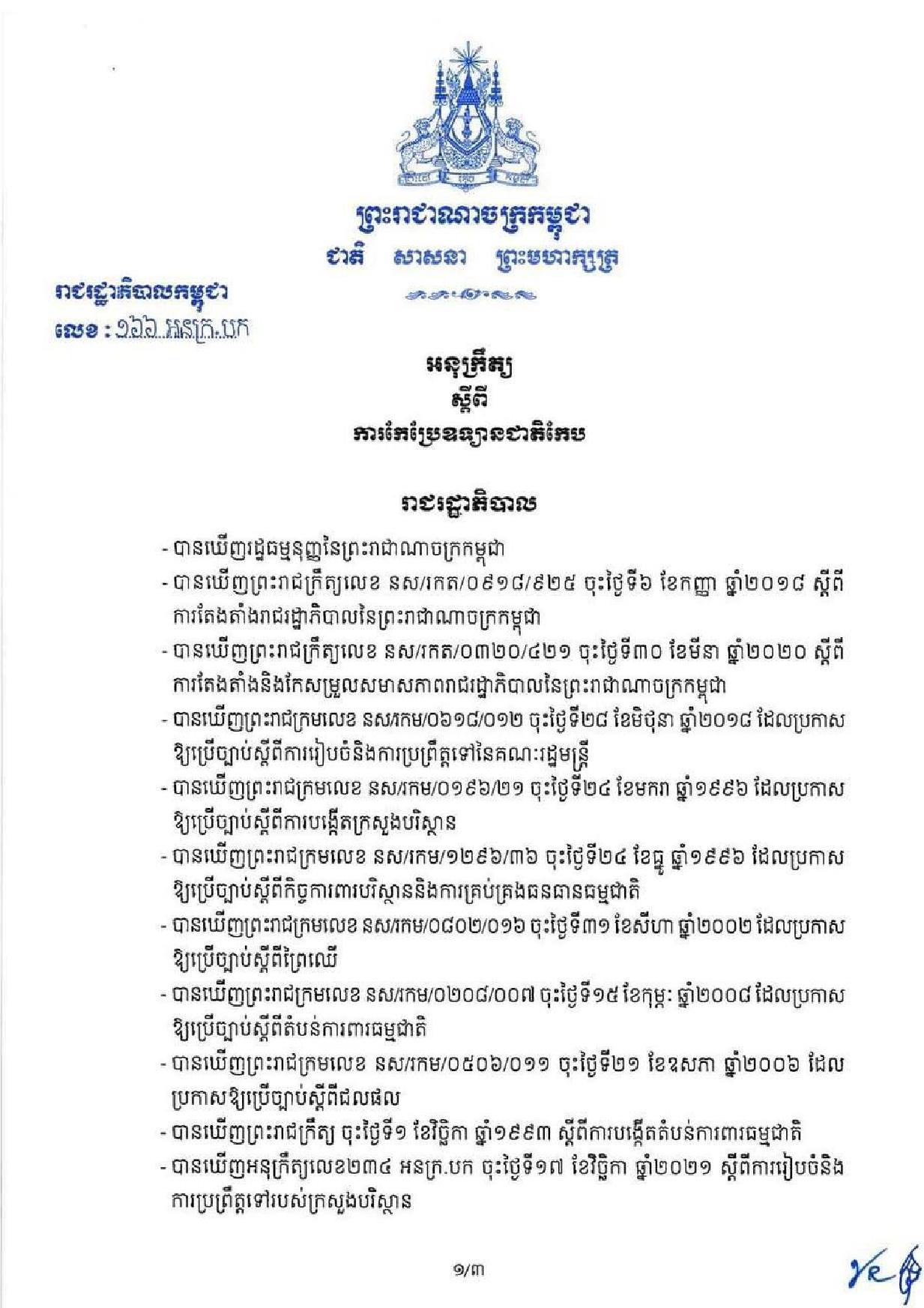 ខាងក្រោមនេះជាអនុក្រឹត្យរបស់រាជរដ្ឋាភិបាល៖