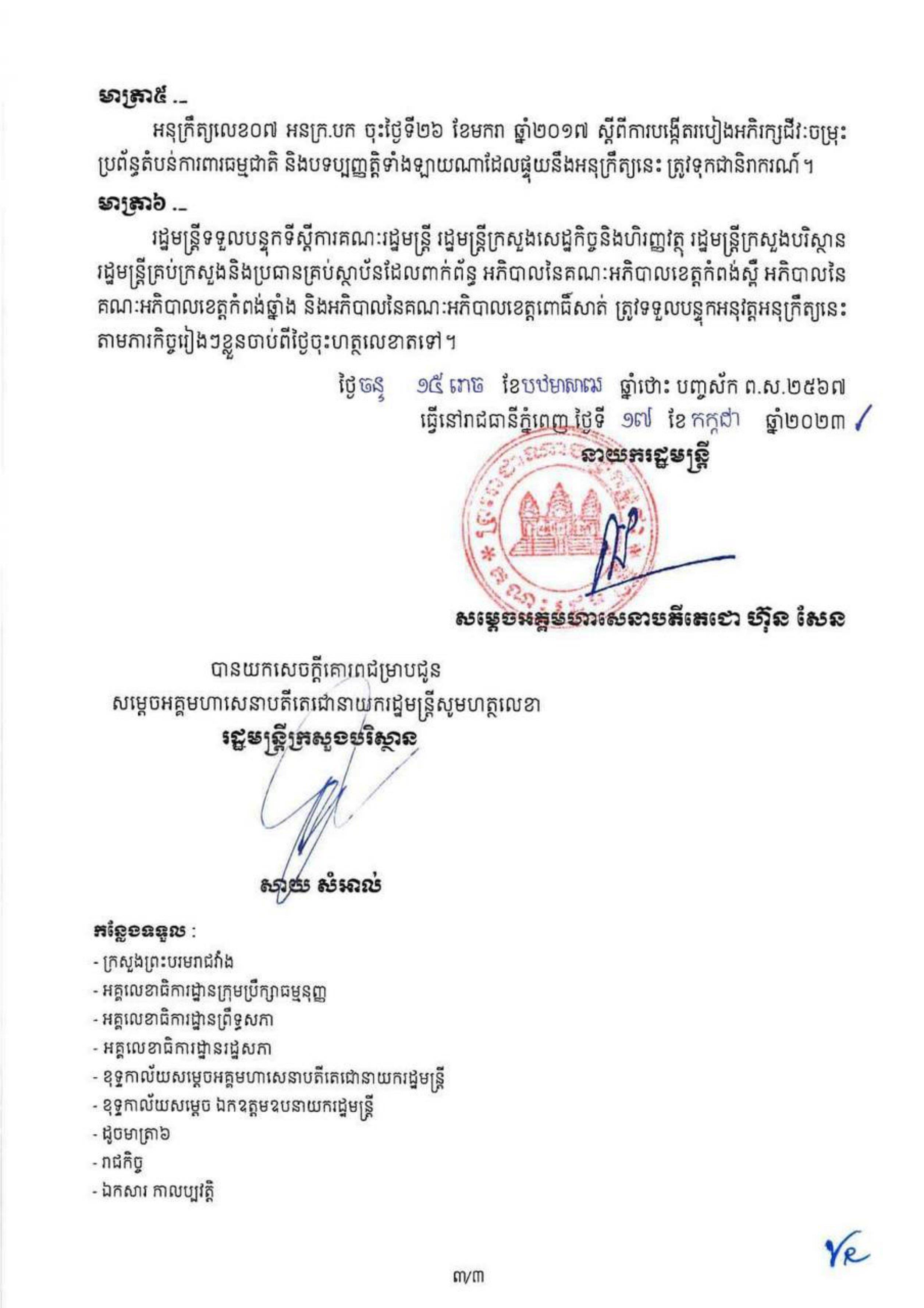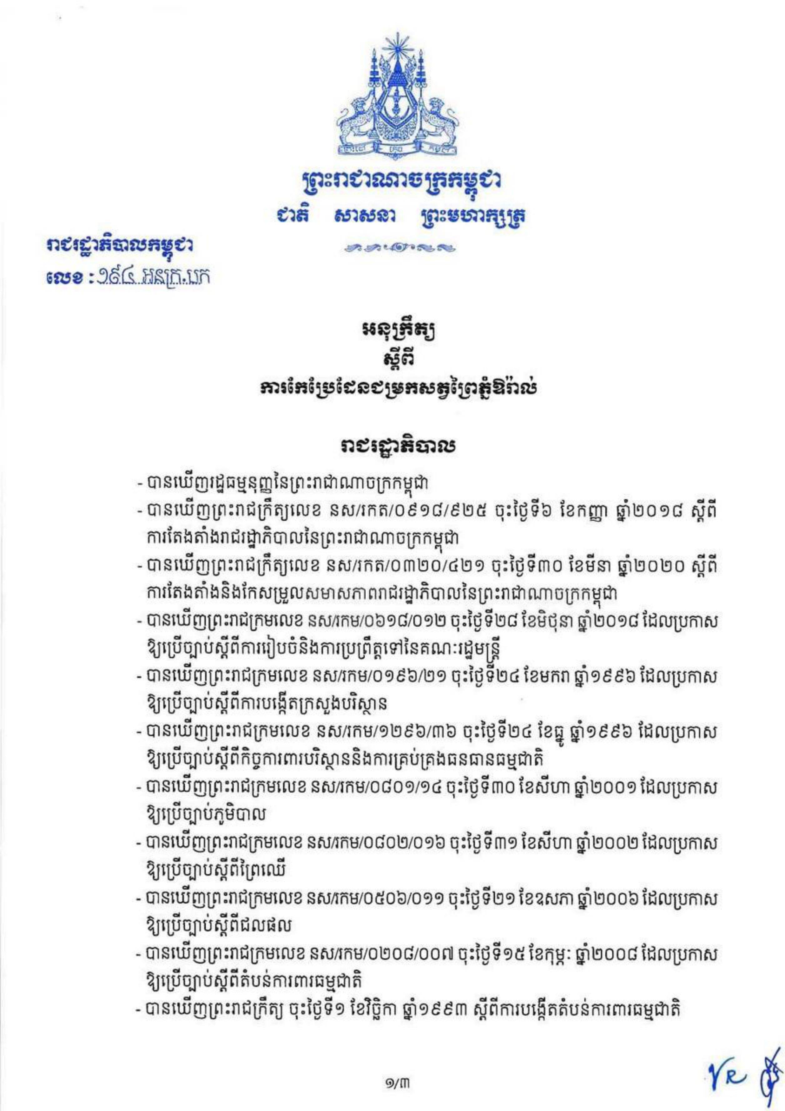 ខាងក្រោមនេះ ជាអនុក្រឹត្យរបស់រាជរដ្ឋាភិបាល ដែលមានខ្លឹមសារទាំងស្រុង៖