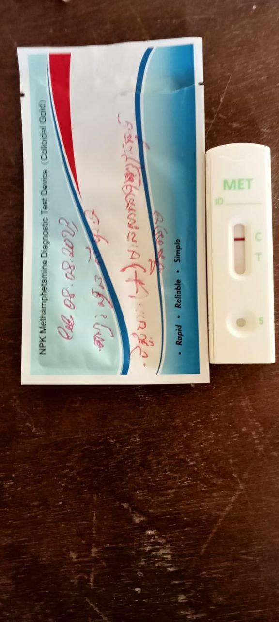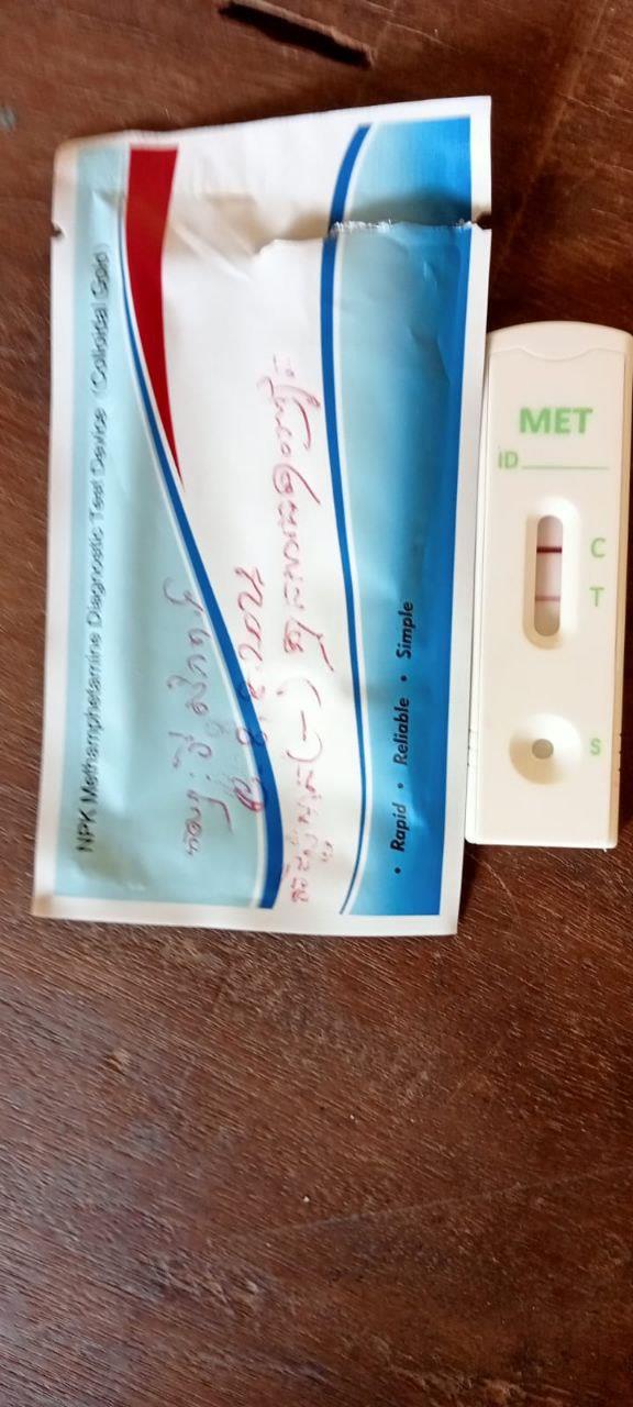 ជនសង្ស័យបានតេស្តទឹកនោមរកសារធាតុញៀនជាលទ្ធផលវិជ្ជមាន(+) មានសារធាតុញៀនក្នុងទឹកនោម ប្រើប្រាស់ដោយបំពាននូវសារធាតុញៀនខុសច្បាប់។ ចំពោះវត្ថុតាងរួមមាន៖ មួកសុវត្ថិភាពចំនួន០២ ក្នុងនោះពណ៌ខ្មៅចំនួន០១នឹងពណ៌សចំនួន០១។ ម៉ូតូចំនួន០១គ្រឿងម៉ាកDream C125 សេរី2020 ពណ៌ខ្មៅ ពាក់ស្លាកលេខប-មានជ័យ1V-4659។ ទូរស័ព្ទដៃ០១គ្រឿង ម៉ាកiPhon7ពណ៌ស។