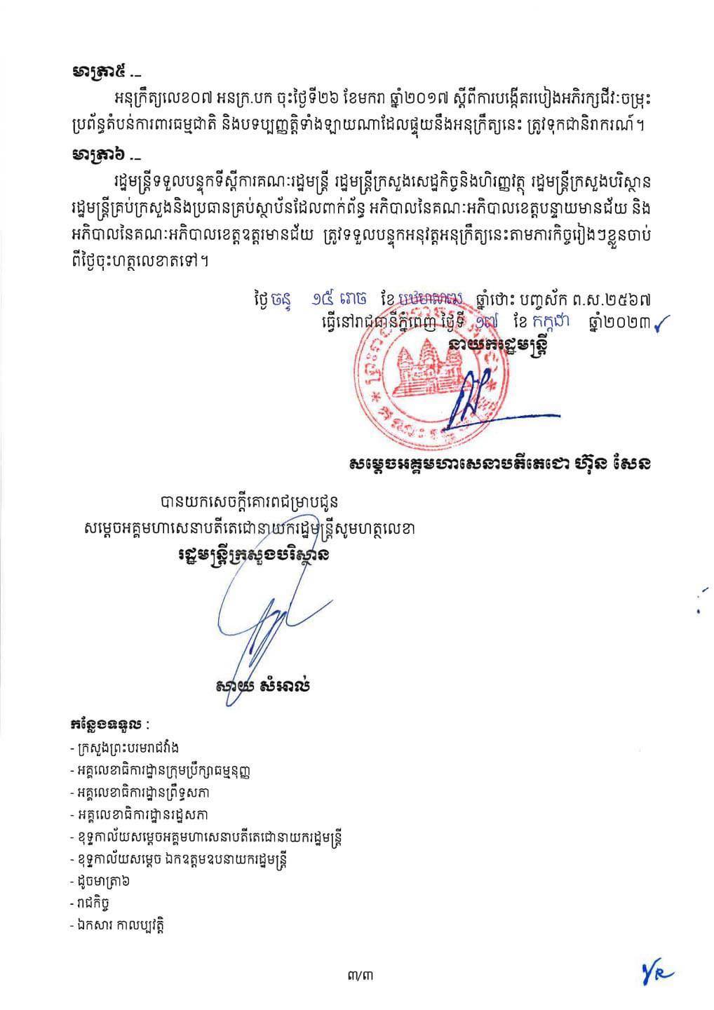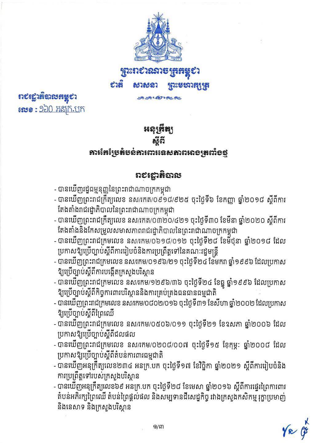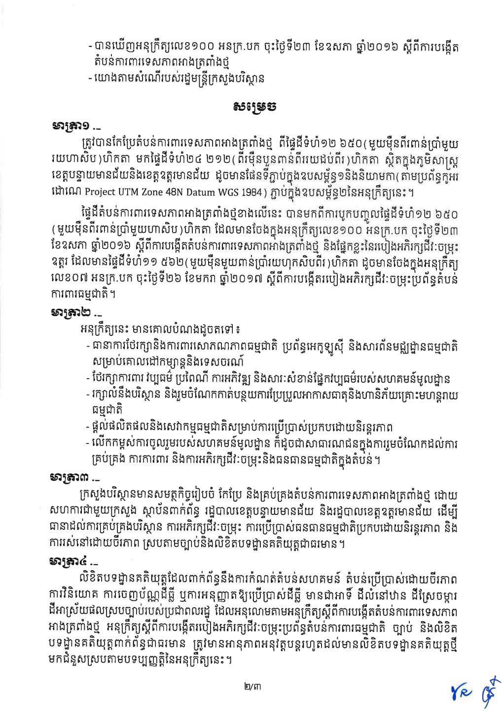 រាជរដ្ឋាភិបាល ចេញអនុក្រឹត្យ ស្ដីពីការកែប្រែតំបន់ការពារទេសភាពអាងត្រពាំងថ្ម ក្នុងភូមិសាស្ដ្រខេត្តបន្ទាយមានជ័យនិងខេត្តឧត្តរមានជ័យ