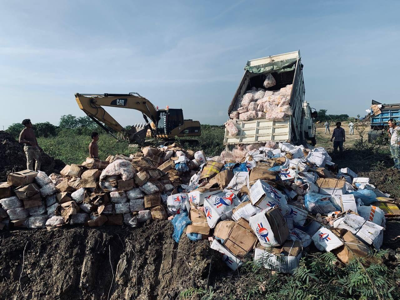សាច់បង្កកគ្មានគុណភាពចំនួន១៤តោន ត្រូវដុតកម្ទេចចោលនៅខេត្តកណ្តាល