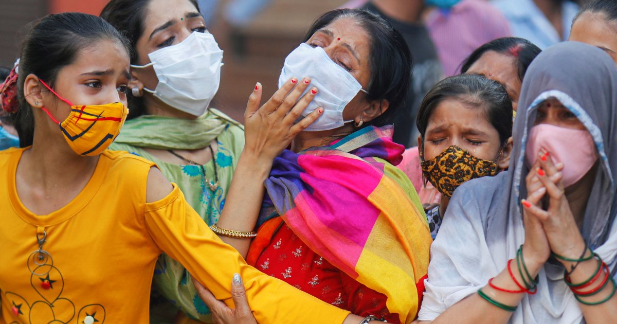 Relatives mourn the death of a man due to the coronavirus disease (COVID-19), at a crematorium in New Delhi, India September 28, 2020. REUTERS/Adnan Abidi TPX IMAGES OF THE DAY
