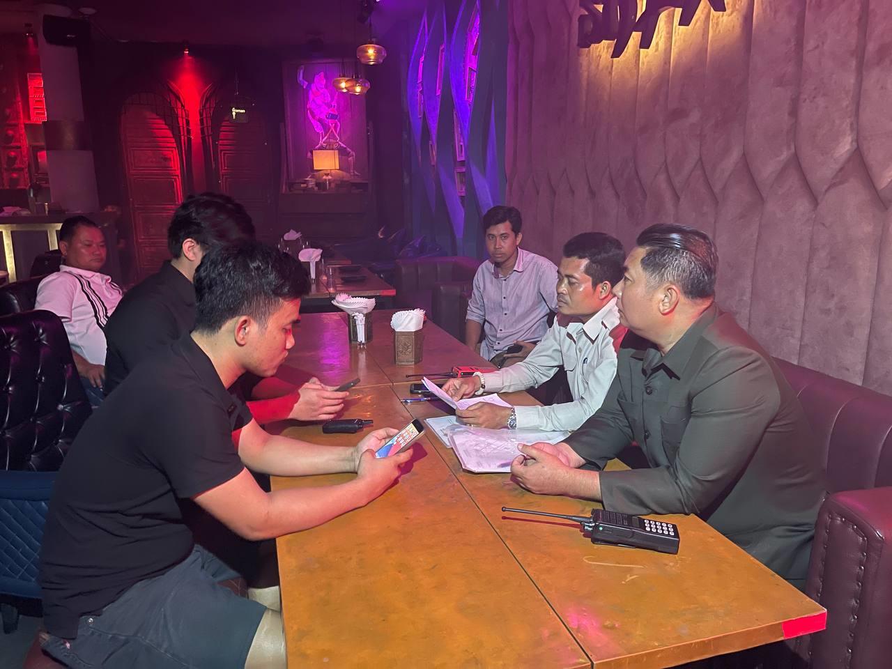 (ភ្នំពេញ)៖ តាមការចង្អុលបង្ហាញពី លោក ជា ខេមា អភិបាលខណ្ឌដូនពេញ នៅយប់ថ្ងៃទី០៦ ខែកញ្ញា ឆ្នាំ២០២៣ លោក ចាប ឌីណា អភិបាលរងខណ្ឌដូនពេញ បានដឹកនាំកម្លាំងគណៈបញ្ជាការឯកភាពរដ្ឋបាលខណ្ឌ ចុះត្រួតពិនិត្យក្លឹបកម្សាន្ត នឹក Ex ដើម្បីត្រួតពិនិត្យច្បាប់អាជីវកម្ម និងបានណែនាំម្ចាស់ទីតាំងពាក់ព័ន្ធនឹងការងារសន្តិសុខ សណ្តាប់ធ្នាប់ របៀបរៀបរយសាធារណៈ។