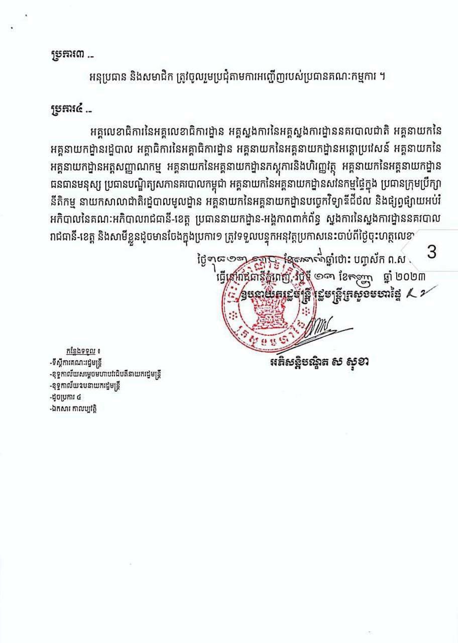 (ភ្នំពេញ)៖ អភិសន្តិបណ្ឌិត ស សុខា ឧបនាយករដ្ឋមន្ត្រី រដ្ឋមន្ត្រីក្រសួងមហាផ្ទៃ បានចេញសេចក្តីសម្រេច ស្តីពីការបង្កើតគណៈកម្មការសិក្សា និងកំណត់ចំនួនស្នងការរងនគរបាលរាជធានី ខេត្ត ចំណុះអគ្គស្នងការដ្ឋាននគរបាលជាតិ និងចំនួននាយរងប៉ុស្តិ៍នគរបាលច្រកទ្វារអាកាសយានដ្ឋានអន្តរជាតិ-ព្រំដែនអន្តរជាតិ ចំណុះអគ្គនាយកដ្ឋានអន្តោប្រវេសន៍ នៃក្រសួងមហាផ្ទៃ។ នេះបើតាមសេចក្ដីសម្រេច ដែលបណ្ដាញព័ត៌មាន Fresh News ទទួលបាននៅថ្ងៃទី១៤ ខែកញ្ញា ឆ្នាំ២០២៣៕
