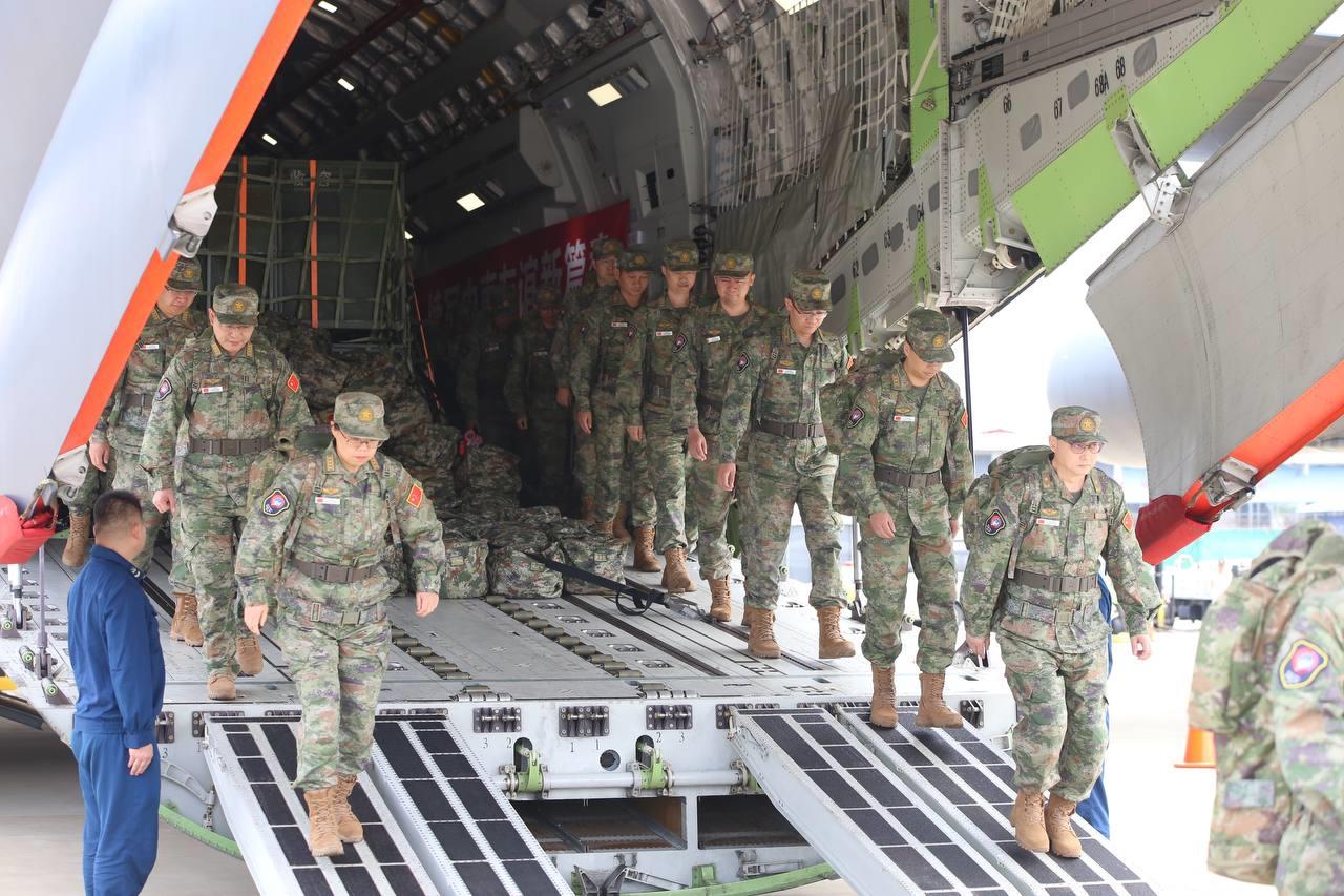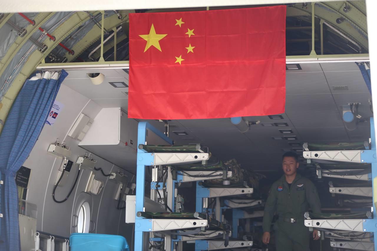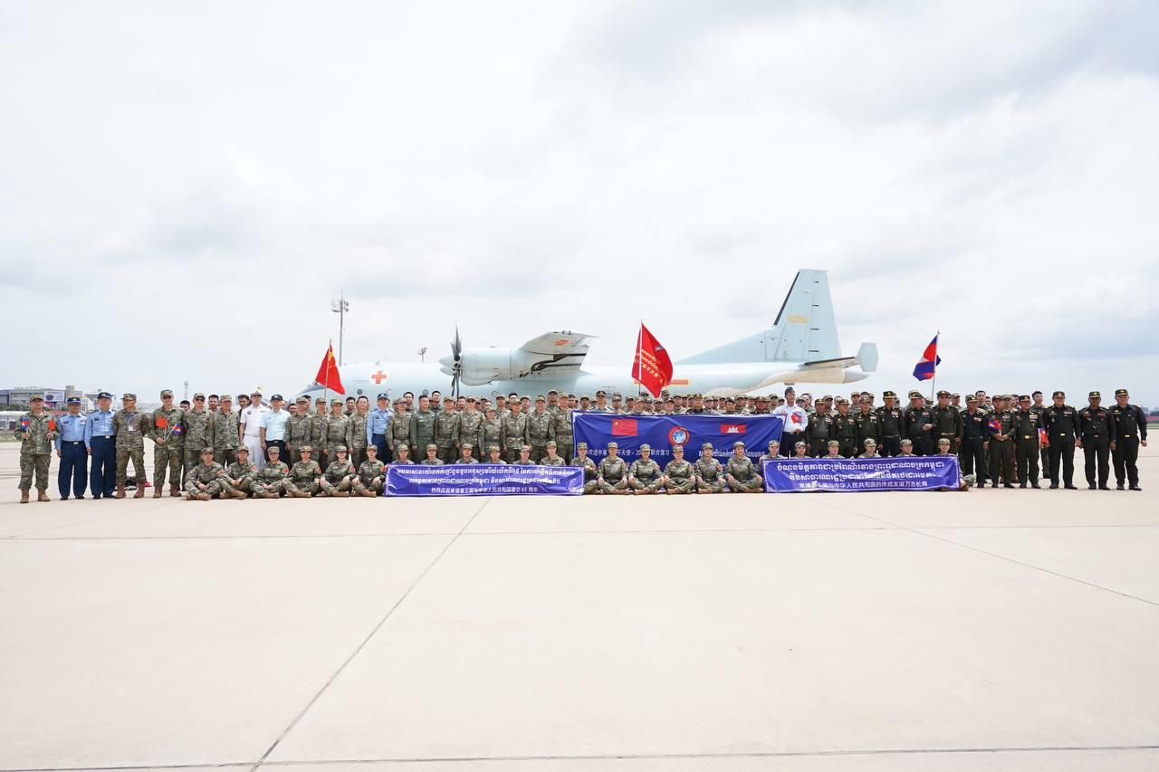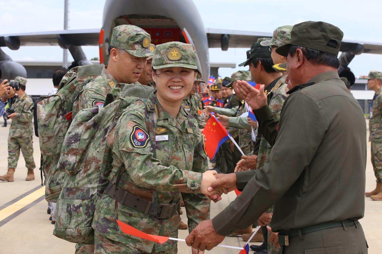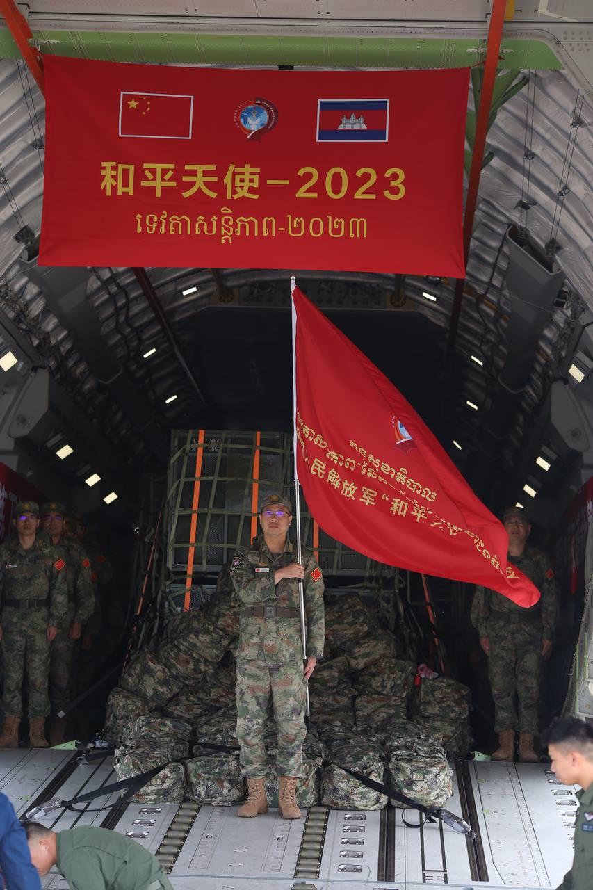 កម្លាំង និងសម្ភារសម្រាប់ចូលរួមធ្វើសមយុទ្ធសុខាភិបាលរួមគ្នា រវាងកងទ័ពកម្ពុជា-ចិន មានឈ្មោះថា «ទេវតាសន្តិភាព-ឆ្នាំ២០២៣» បានដឹកនាំដល់កម្ពុជាហើយ