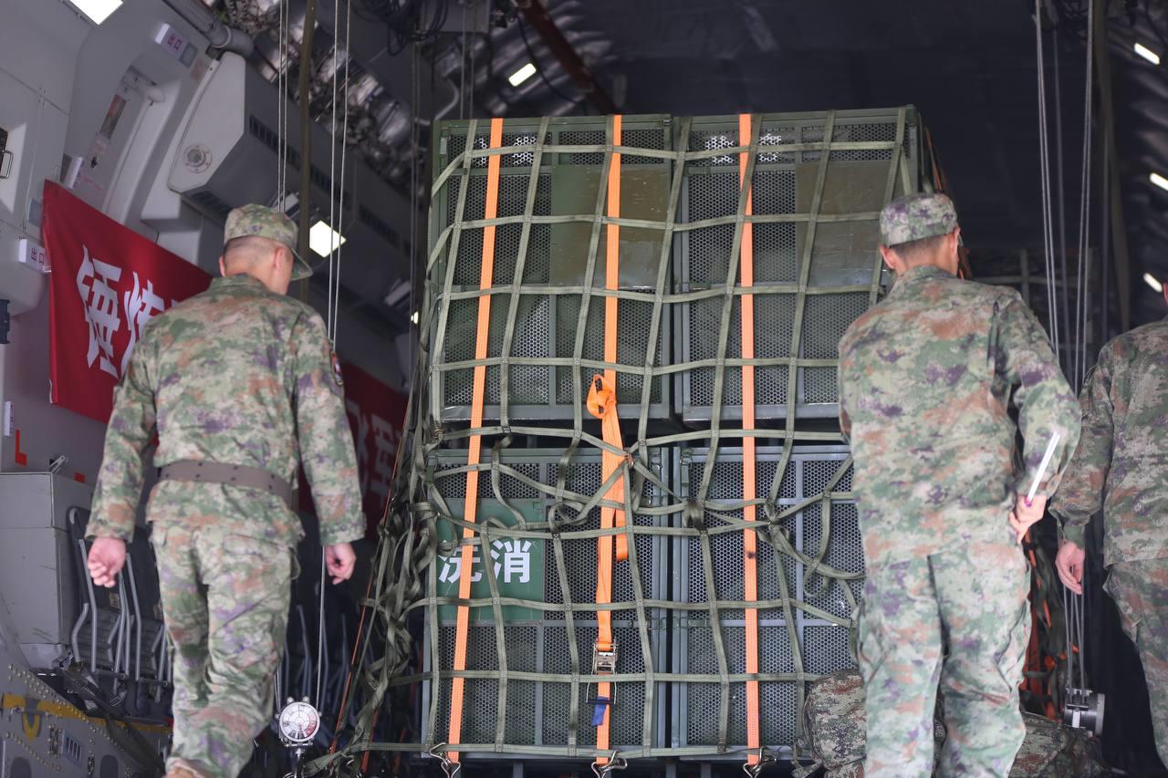 ពិធីទទួលសម្ភារនេះបានធ្វើឡើងក្រោមវត្តមានឧត្តមសេនីយ៍ទោ ប៉ែន សុក្រឹត្យវិទ្យា នាយលេខាធិការដ្ឋាន សេនាធិការចម្រុះ នៃកងយោធពលខេមរភូមិន្ទ និងជាប្រធានក្រុមចាត់ចែងទូទៅនៃសមយុទ្ធទេវតាសន្តិភាព នាព្រលានយន្តអន្តរជាតិភ្នំពេញ (VIP)។ សម្ភារទាំងនោះបានដឹកតាមយន្តហោះ ៤គ្រឿង គឺ Y-19 មួយគ្រឿង, Y-20 បីគ្រឿង រថយន្តសង្គ្រោះ ៣គ្រឿង រួមនឹងសម្ភារបរិក្ខារសុខាភិបាល សម្ភារសង្គ្រោះចំនួន ១០០០ឈុតជាដើម។