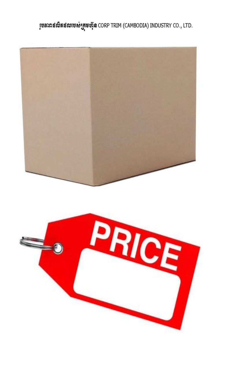 ២៖ CORP TRIM (CAMBODIA) INDUSTRY CO., LTD គម្រោងបង្កើតរោងចក្រផលិតកេសកាតុង និងស្លាកតម្លៃពីក្រដាស ដែលមានទីតាំងវិនិយោគស្ថិតនៅផ្លូវលេខ ១២២ ភូមិត្រកៀត ឃុំត្រពាំងសាប ស្រុកបាទី ខេត្តតាកែវ ក្នុងទុនវិនិយោគប្រមាណ ៦.៣លានដុល្លារ និងអាចបង្កើតការងារបានចំនួន ១៨០កន្លែង។