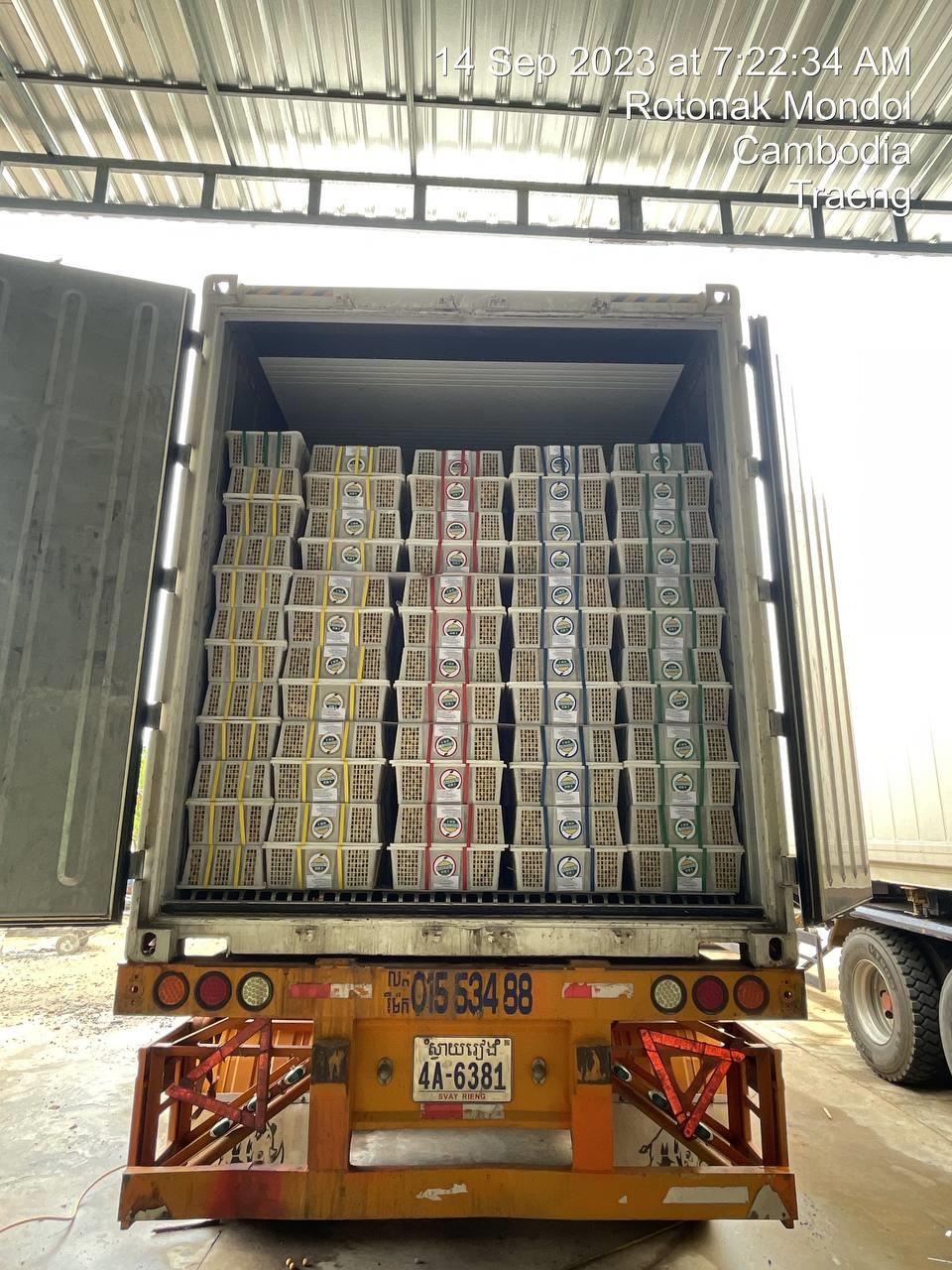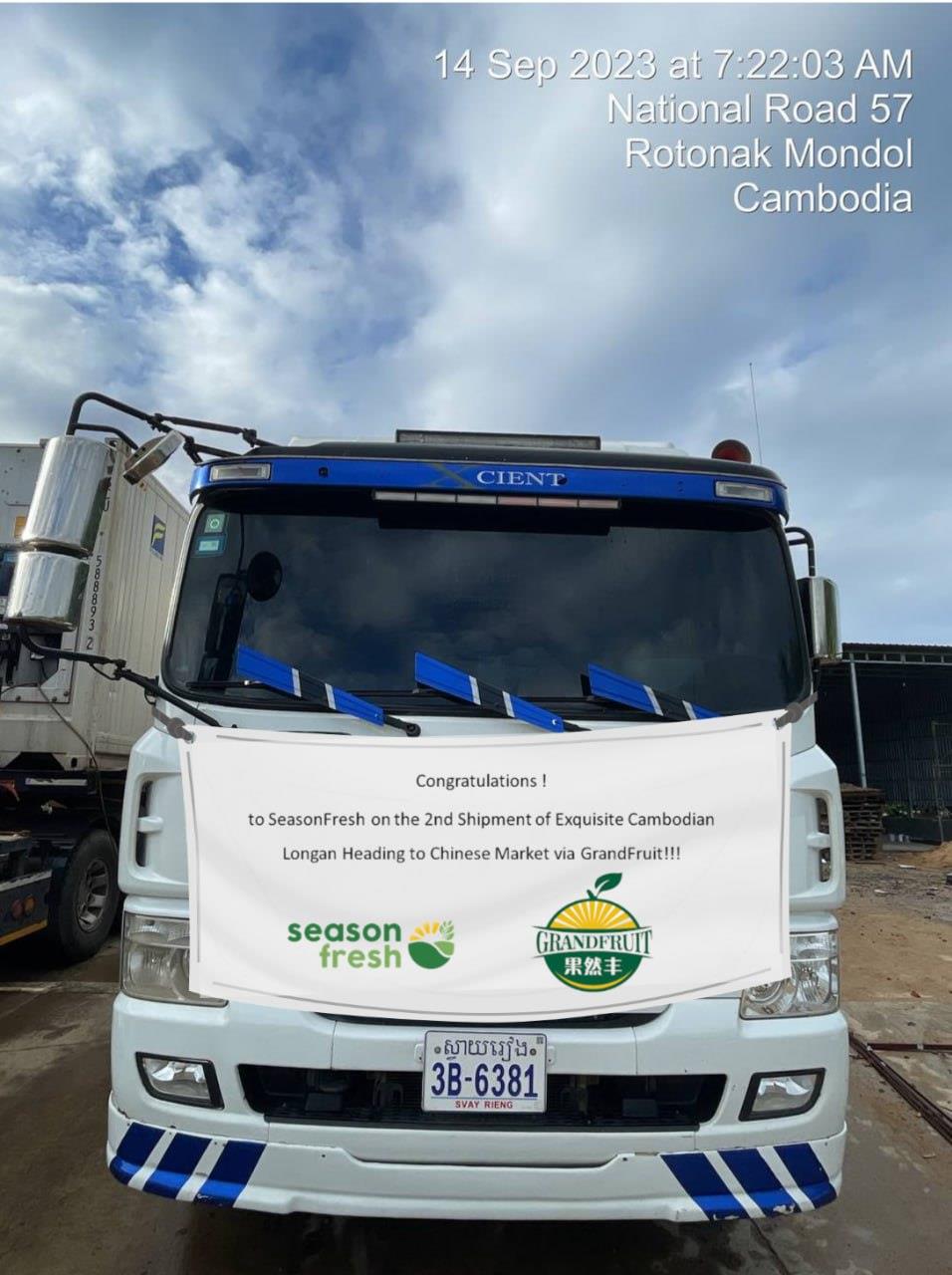 (ភ្នំពេញ)៖ ក្រុមហ៊ុន Season Fresh Co.,Ltd, ដែលជាក្រុមហ៊ុននាំចេញផលិតផលស្រស់ ឈានមុខគេរបស់កម្ពុជា ក្រោមកិច្ចសហការជាមួយ Shanghai GrandFruit Import & Export Co., Ltd (GrandFruit) ដែលជាអ្នកចែកចាយផ្លែឈើអន្តរជាតិដ៏ល្បីល្បាញនៅទីក្រុងសៀងហៃ ប្រទេសចិន បានចាប់ផ្តើមដំណើរការដឹកជញ្ជូនផ្លែមៀនប៉ៃលិនស្រស់ ទៅប្រទេសចិនជាលើកទីពីរ ដោយជោគជ័យ នៅថ្ងៃទី១៧ ខែកញ្ញា ឆ្នាំ ២០២៣។