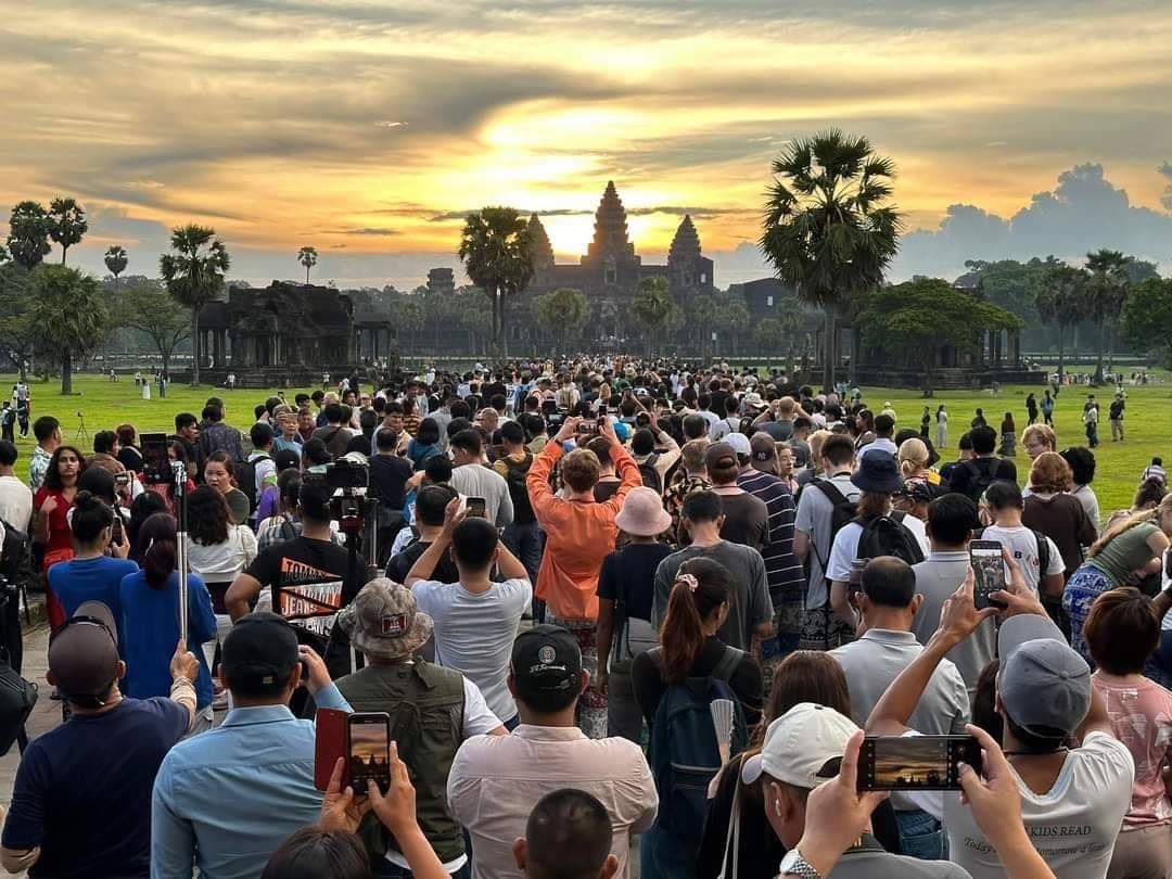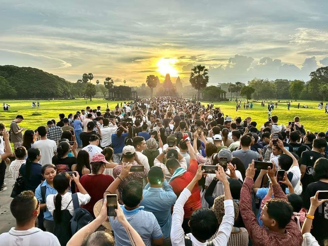 (សៀមរាប)៖ ភ្ញៀវទេសចរជាតិ-អន្តរជាតិ រួមទាំងអ្នកជំនាញថតរូប និងប្រជាពលរដ្ឋយ៉ាងហោចជាង១ពាន់នាក់ បានចូលទស្សនាព្រឹត្តិការណ៍ព្រះអាទិត្យរះចំកំពូលប្រាង្គកណ្ដាលនៃប្រាសាទអង្គរវត្ត ដែលយើងហៅថា សមរាត្រីAngkor Exuinox នាព្រឹកថ្ងៃទី២១ ខែកញ្ញា ឆ្នាំ២០២៣។
