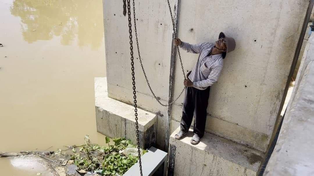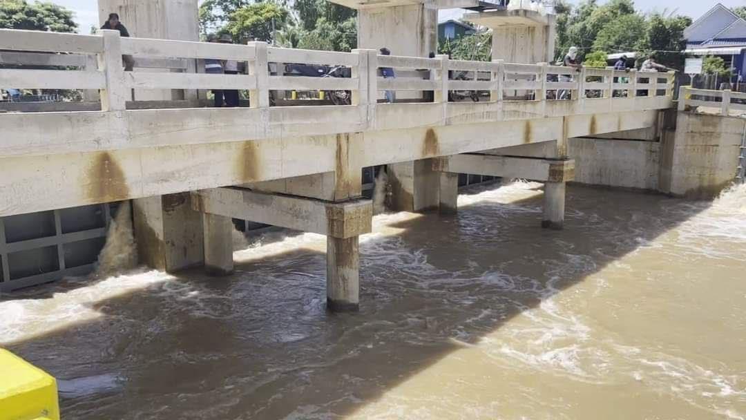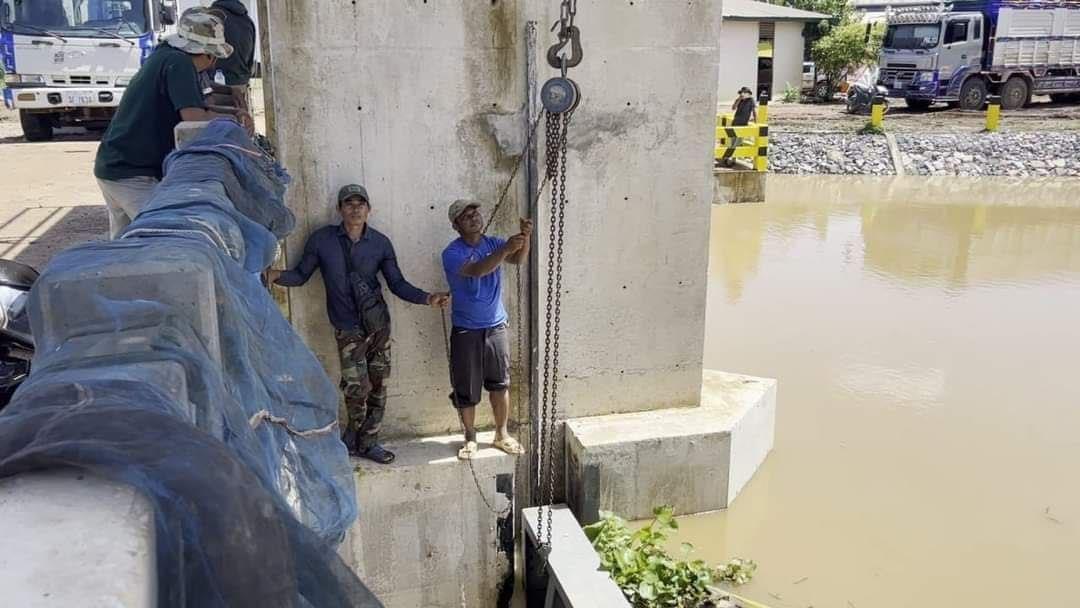 (បន្ទាយមានជ័យ)៖ ទ្វារទឹកសំណង់ពោធិ៍២ដើម នៅស្រុកមង្គលបូរី ខេត្តបន្ទាយមានជ័យ កំពុងជាប់គាំងដោយសារទឹកបុកខ្លាំងមិនអាចបើកបាន នៅព្រឹកថ្ងៃទី៣០ ខែកញ្ញា ឆ្នាំ២០២៣នេះ គ្រាដែលទឹកកំពុងជន់ឡើងខ្លាំងគំរាមកំហែង ដល់ដំណាំស្រូវរបស់ប្រជាពលរដ្ឋដែលកំពុងប្រមូលផល នៅឃុំរហាត់ទឹក។