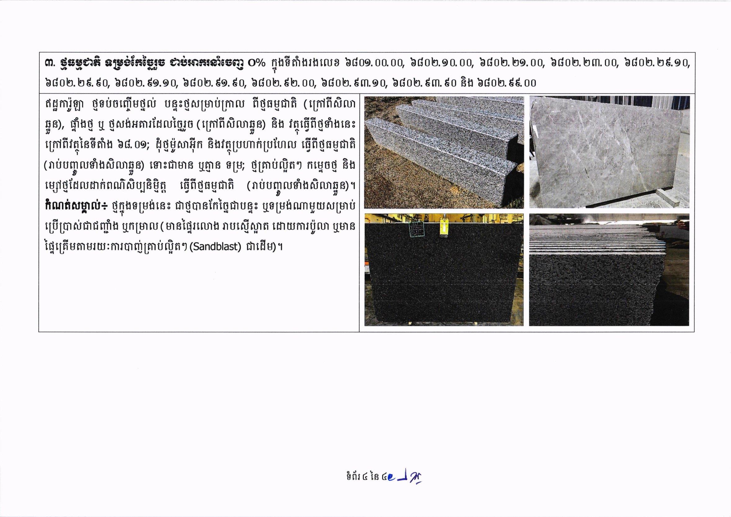 អគ្គនាយកដ្ឋានគយ ណែនាំដល់ប្រធាននាយកដ្ឋាន សាខា និងការិយាល័យគយ និងរដ្ឋាករ ឱ្យពង្រឹងប្រសិទ្ធភាព គ្រប់គ្រងការនាំចេញមុខទំនិញថ្មធម្មជាតិ