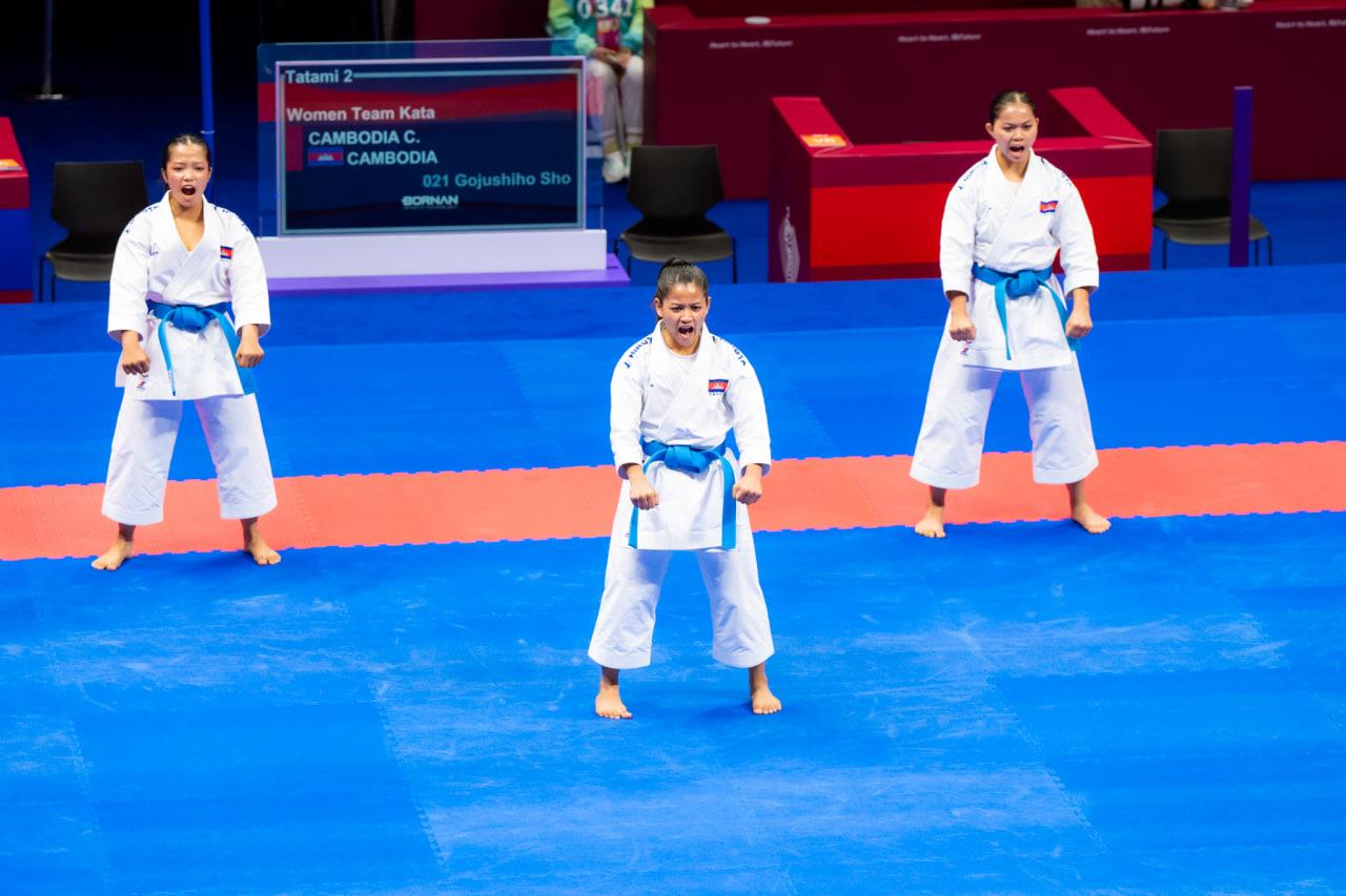 អបអរសាទរ! កម្ពុជាដណ្ដើមបានមេដាយសំរឹទ្ធដំបូង នៅ Asian Games ដោយក្រុមកីឡាការិនីការ៉ាតេ លើវិញ្ញាសាសម្ដែងមេគុននារីជាក្រុម