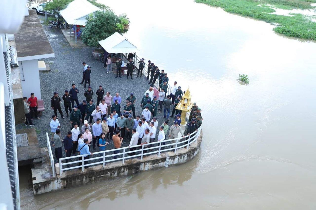 (កណ្តាល)៖ លោក គង់ សោភ័ណ្ឌ អភិបាលខេត្តកណ្ដាល និងជាប្រធានគណ:កម្មាធិការគ្រប់គ្រងគ្រោះមហន្តរាយខេត្ត នៅល្ងាចថ្ងៃទី២០ ខែតុលា ឆ្នាំ២០២៣ បានដឹកនាំមន្ទីរពាក់ព័ន្ធ អាជ្ញាធរស្រុកកណ្តាលស្ទឹង និងក្រុងតាខ្មៅ ព្រមទាំងកងកម្លាំងប្រដាប់គ្រប់ប្រភេទ ចុះពិនិត្យស្ថានភាពជំនន់ទឹកភ្លៀង នៅទំនប់ ៧មករា និងប្រឡាយ៩៦។