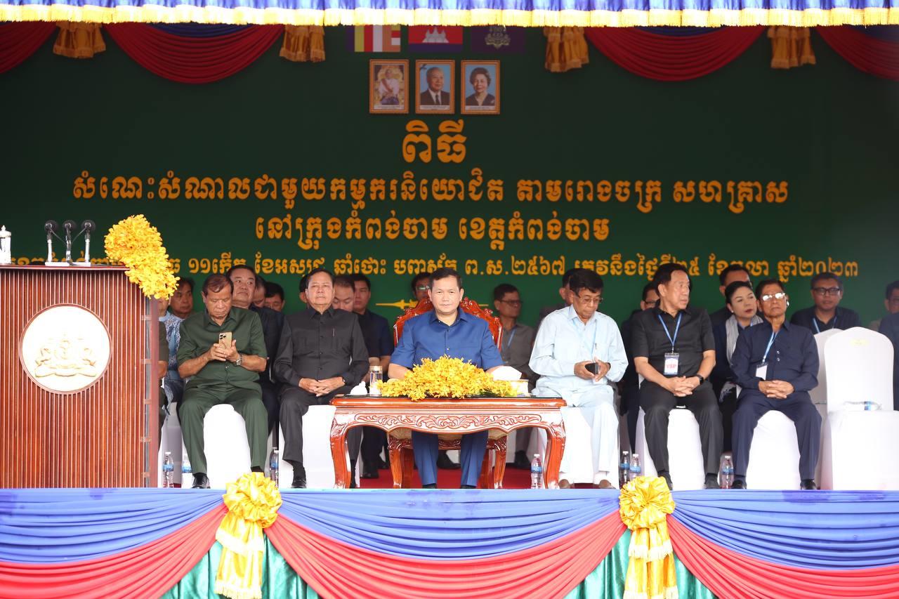 សម្តេចមហាបវរធិបតី ហ៊ុន ម៉ាណែត បានថ្លែងដូចនេះនៅព្រឹកថ្ងៃទី២៥ ខែតុលា ឆ្នាំ២០២៣នេះ ក្នុងឱកាសអញ្ជើញជួបសំណេះសំណាលជាមួយកម្មករ និយោជិតប្រមាណ ១២ ០៦០នាក់ នៅបណ្តារោងចក្រ សហគ្រាសចំនួន១៤ ដែលមានមូលដ្ឋាននៅក្នុងស្រុកព្រៃឈរ និងស្រុកកំពង់សៀម ខេត្តកំពង់ចាម។