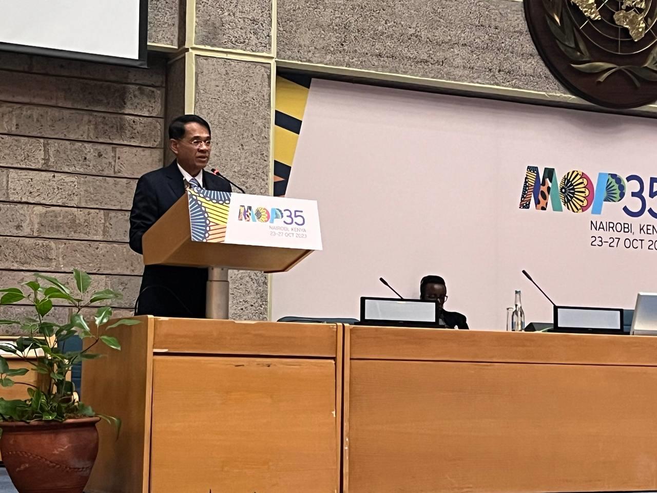 (កេនយ៉ា-ណៃរ៉ូប៊ី)៖ លោក ប៉ាក សុខារ៉ាវុត អនុរដ្ឋលេខាធិការក្រសួងបរិស្ថាន ក្នុងរយៈពេលនៃការរួមកិច្ចប្រជុំនៅទីក្រុងណៃរូប៊ី ប្រទេសកេនយ៉ា ពីថ្ងៃទី២៣ ដល់ថ្ងៃទី២៧ ខែតុលា ឆ្នាំ២០២៣ បានបញ្ជាក់ពីជំហរ និងការប្តេជ្ញាចិត្តរបស់រាជរដ្ឋាភិបាលកម្ពុជា ក្នុងការចូលរួមជាមួយសហគមន៍អន្តរជាតិ ក្នុងការអនុវត្តពិធីសារម៉ុងរ៉េអាល់ និងវិសោធនកម្ម ជាពិសេសវិសោធនកម្មទីក្រុងគីហ្គាលី ដែលបានដាក់ឲ្យមានការត្រួតពិនិត្យនិងកាត់បន្ថយការប្រើប្រាស់សារធាតុហាយដ្រូភ្លុយអរ៉ូកាបូន ស្របតាមកតព្វកិច្ចភាគីនៃពិធីសារម៉ុងរ៉េអាល់ប្រកបដោយប្រសិទ្ធភាពស្របតាមយុទ្ធសាស្ត្របញ្ចកោណដំណាក់កាលទីមួយរបស់រាជរដ្ឋាភិបាល។
