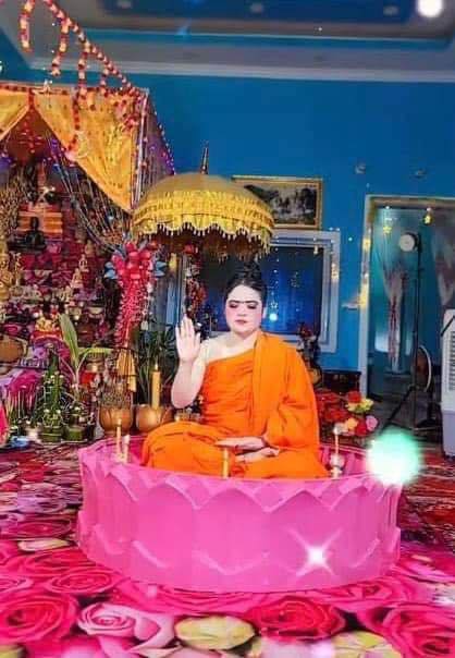 ស្រ្តីគ្រូទាយ និងព្យាបាលជំងឺម្នាក់នៅខេត្តក្រចេះ ដែលយកស្បង់ចីវររបស់ព្រះសង្ឃ មកស្លៀកអង្គុយក្នុងចានផ្កាឈូកធ្វើដូចព្រះ ថតបង្ហោះក្នុងបណ្ដាញសង្គម ត្រូវបានអាជ្ញាធរឲ្យបញ្ឈប់សកម្មភាព