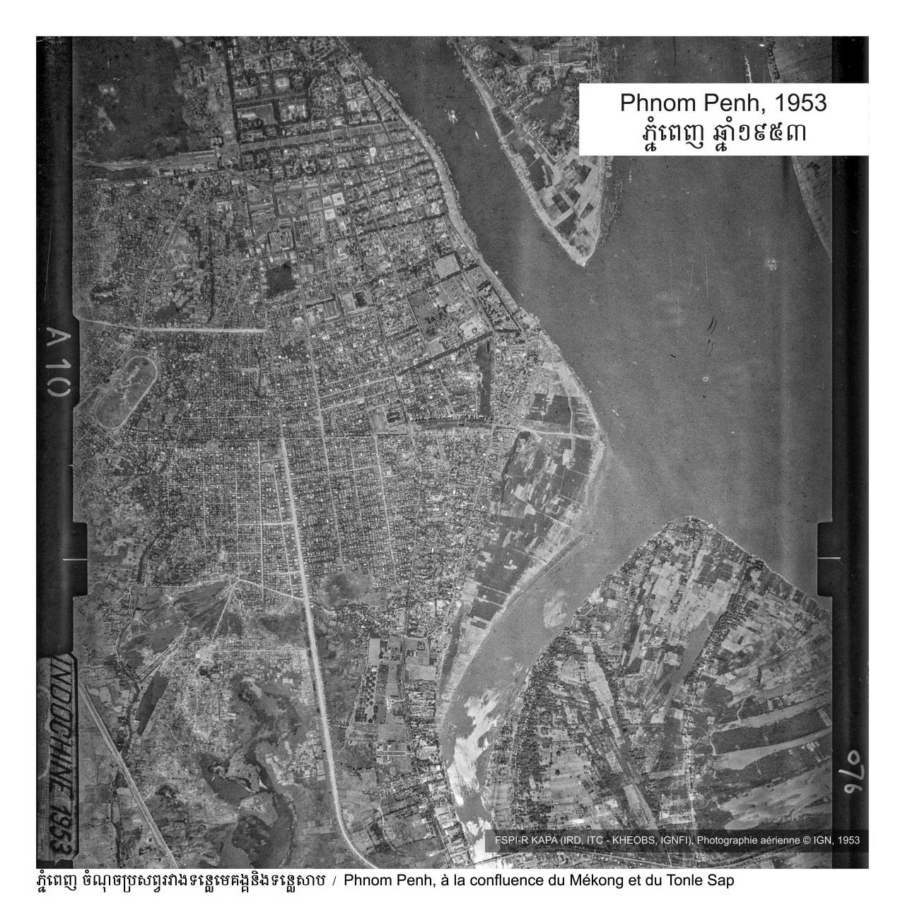 ក្នុងអំឡុងឆ្នាំ១៩៥០ បារាំងជាប្រទេសដំបូងគេដែលបានថតដែនដីកម្ពុជាពីលើយន្តហោះ ដើម្បីរៀបចំបង្កើតផែនទីផ្សេងៗ ដោយសហការជាមួយវិទ្យាស្ថានព័ត៌មានភូមិសាស្រ្ត និងព្រៃឈើបារាំង (IGNFI)។ នៅកម្ពុជា ក្នុងចន្លោះ ឆ្នាំ១៩៥២និង១៩៥៤ វិទ្យាស្ថាន IGNFI បានផ្តិតយករូបភាពប្រមាណ ១១ ០០០សន្លឹក ដែលគ្របដណ្តប់មួយផ្នែកធំនៃទឹកដីកម្ពុជា។ បច្ចុប្បន្ន បណ្តុំរូបថតទាំងនេះគឺជាបណ្ណសារដ៏វិសេសវិសាលដែលនាំយើងត្រលប់ទៅកាន់ទេសភាពទីក្រុង និងជនបទកាលពី៧០ឆ្នាំមុន។ រូបថតឯកសារទាំងនេះគឺជាធនធានដ៏មានតម្លៃស្តីពីប្រវត្តិសាស្រ្ត ភូមិសាស្រ្ត បុរាណវិទ្យា នគរូបនីយកម្ម និងបរិស្ថាននៃប្រទេសកម្ពុជា។