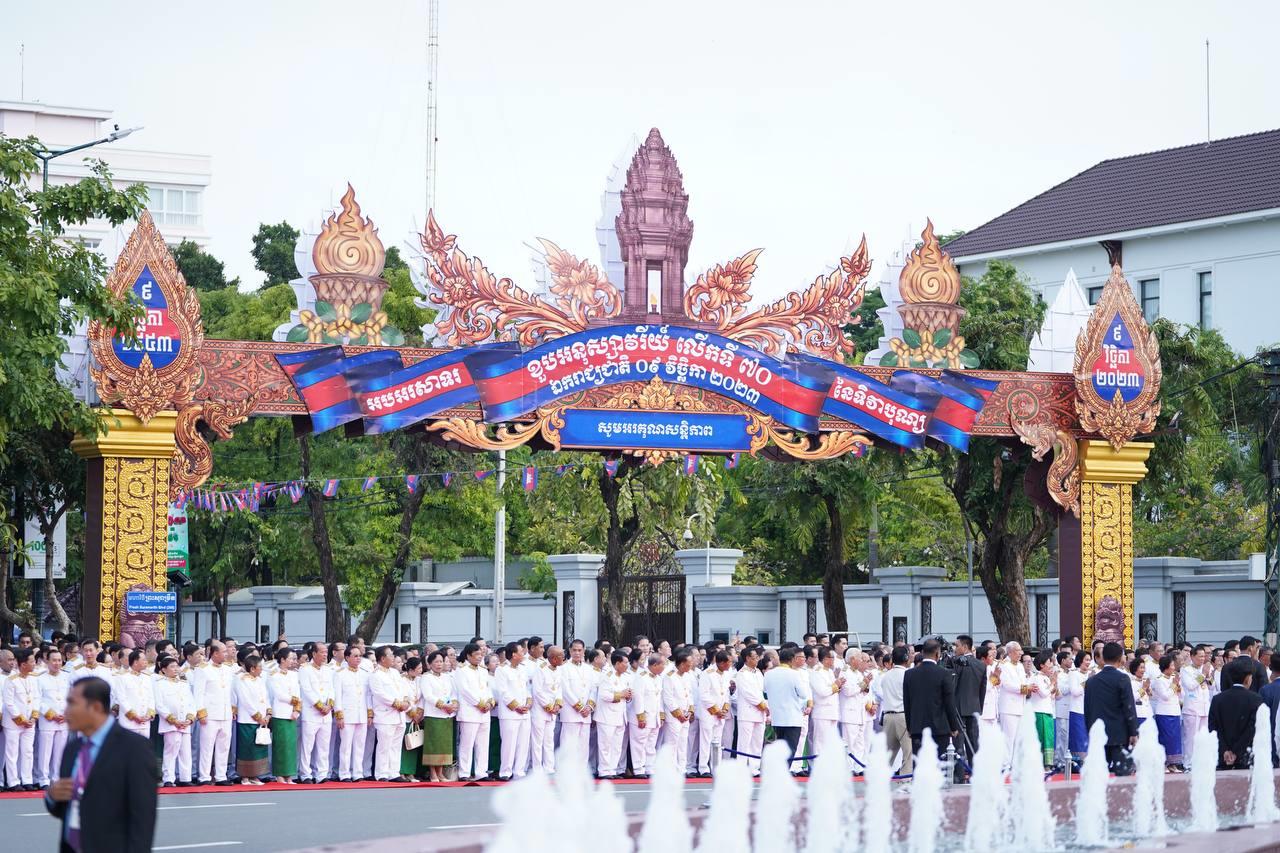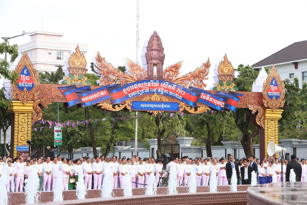 (ភ្នំពេញ)៖ នៅថ្ងៃទី០៩ ខែវិច្ឆិកា ឆ្នាំ២០២៣នេះ គឺជាខួប៧០ឆ្នាំ ដែលប្រជាជាតិកម្ពុជាទាំងមូល បានរំដោះខ្លួនទាំងស្រុងចេញពីអាណានិគមបារាំង ក្រោមព្រះរាជបូជនីយកិច្ចដឹកនាំដ៏ក្លៀវខ្លារបស់ព្រះមហាវីរក្សត្រខ្មែរ ព្រះបរមរតនកោដ្ឋ ព្រះករុណា ព្រះបាទសម្តេច នរោត្តម សីហនុ និងក៏ជាថ្ងៃកំណើតកងយោធពលខេមរភូមិន្ទ។