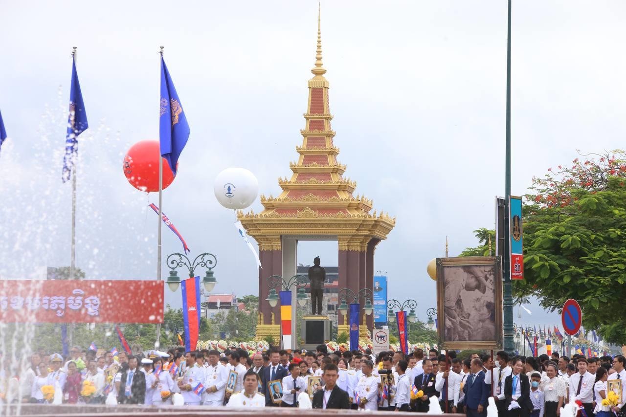 ពិធីអបអរសាទររំលឹកខួបនៃការដណ្តើមបានឯករាជ្យ ត្រូវបានប្រារព្ធឡើងយ៉ាងកងរំពងក្រោមរាជាធិបតីភាពព្រះមហាក្សត្រខ្មែរ ព្រះករុណា ព្រះបាទ សម្តេចព្រះបរមនាថ នរោត្តម សីហមុនី បុត្រាព្រះបរមរតនកោដ្ឋ នរោត្តម សីហនុ ព្រះបិតាឯករាជ្យជាតិខ្មែរ។ ពិធីនេះក៏មានការអញ្ជើញចូលរួមអបអរសាទរ ពីថ្នាក់ដឹកនាំជាន់ខ្ពស់នៃរាជរដ្ឋាភិបាល មន្ត្រីរាជការ សិស្សានុសិស្ស យុវជន និងប្រជាពលរដ្ឋជាច្រើនរូបទៀត៕ ផ្តល់សិទ្ធិដោយ៖ freshnews