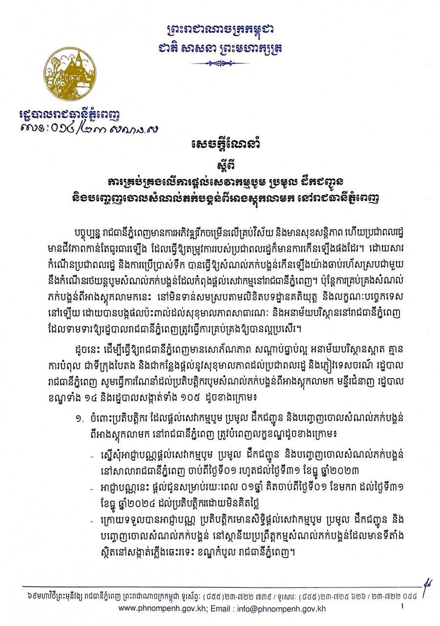 ខាងក្រោមនេះជាសេចក្ដីណែនាំរបស់រដ្ឋបាលរាជធានីភ្នំពេញ៖