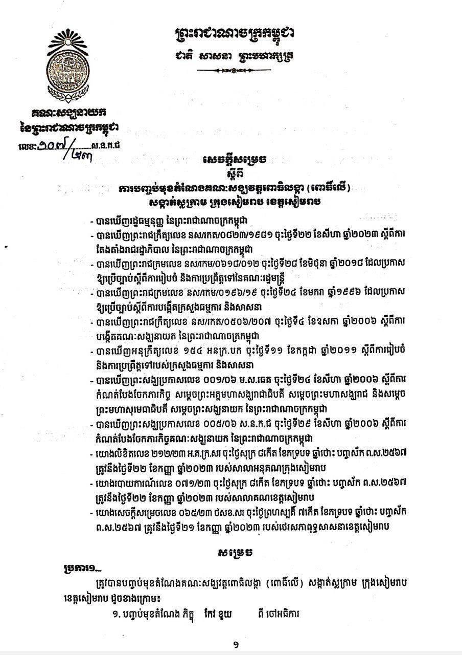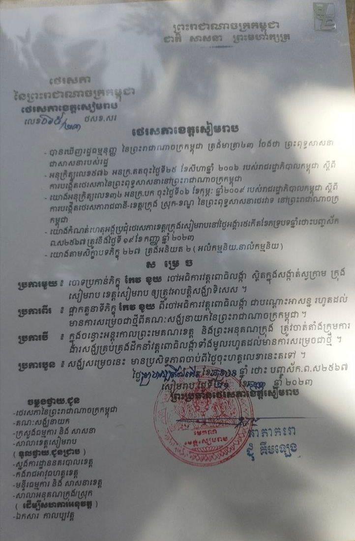 សាលាអនុគណក្រុងសៀមរាប សម្រេចបិទវត្តពោធិលង្កាជាបណ្តោះអាសន្ន និងបញ្ចប់តួនាទីចៅអធិការ គ្រូសូត្រឆ្វេង និងគ្រូសូត្រស្តាំ បន្ទាប់ពីកើតអធិករណ៍មិនចេះចប់ មិនចេះហើយ