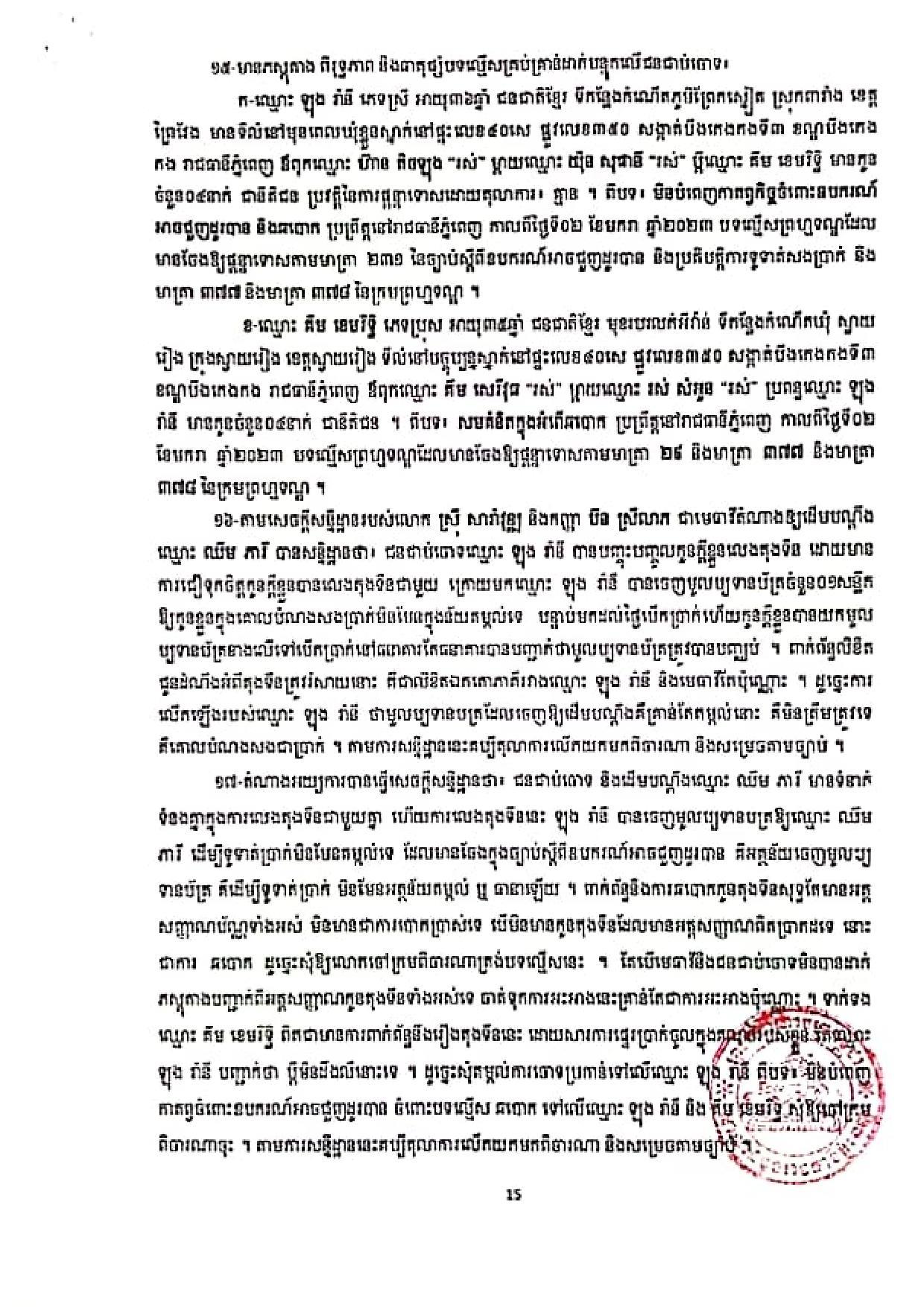 ខាងក្រោមនេះ ជាសាលក្រមសម្រេចផ្តន្ទាទោស៖