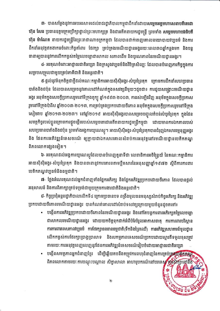 ក្រសួងវប្បធម៌ ចេញសេចក្តីប្រកាសព័ត៌មាន ស្តីពី លទ្ធផលនៃសន្និសីទអន្តររដ្ឋាភិបាលលើកទី៤ ស្ដីពីរមណីយដ្ឋានអង្គរ-សំបូរព្រៃគុក