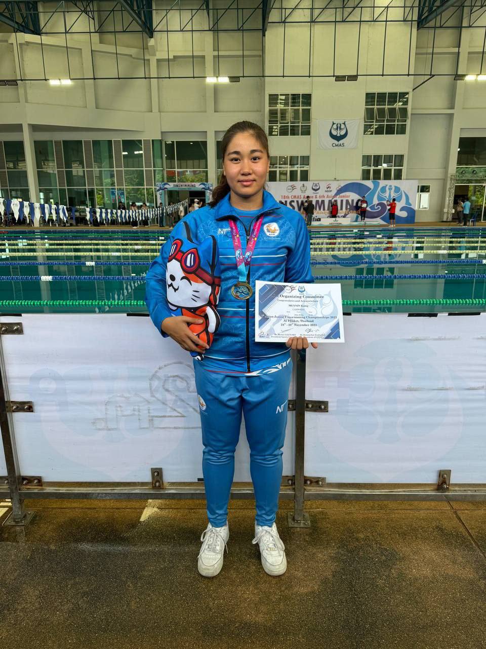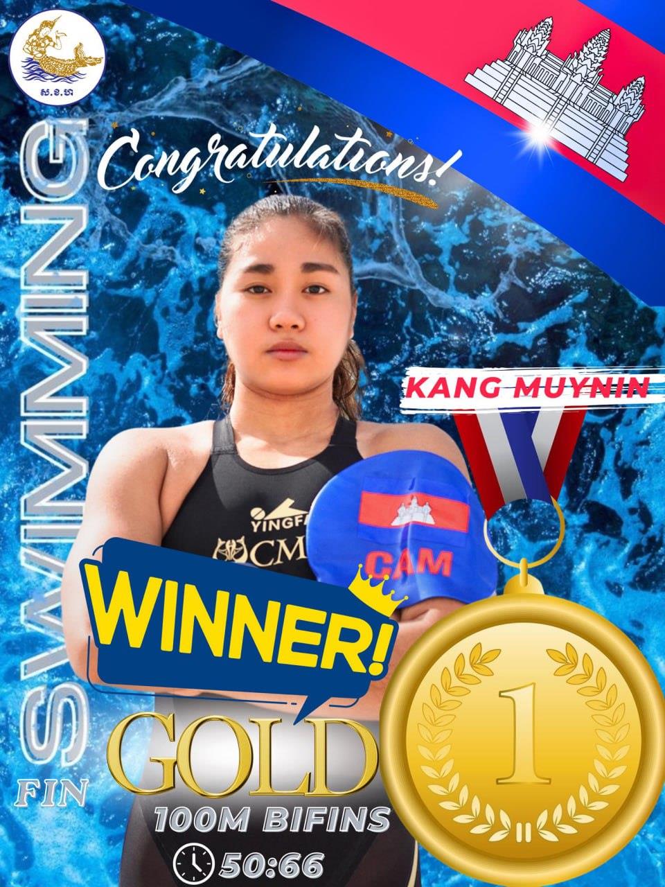 អបអរសាទរ! កីឡាការនី កាំង មុយនីន ឈ្នះមេដាយមាស លើវិញ្ញាសា 100m Bifins ក្នុងការប្រកួត Asian fin swimming championships