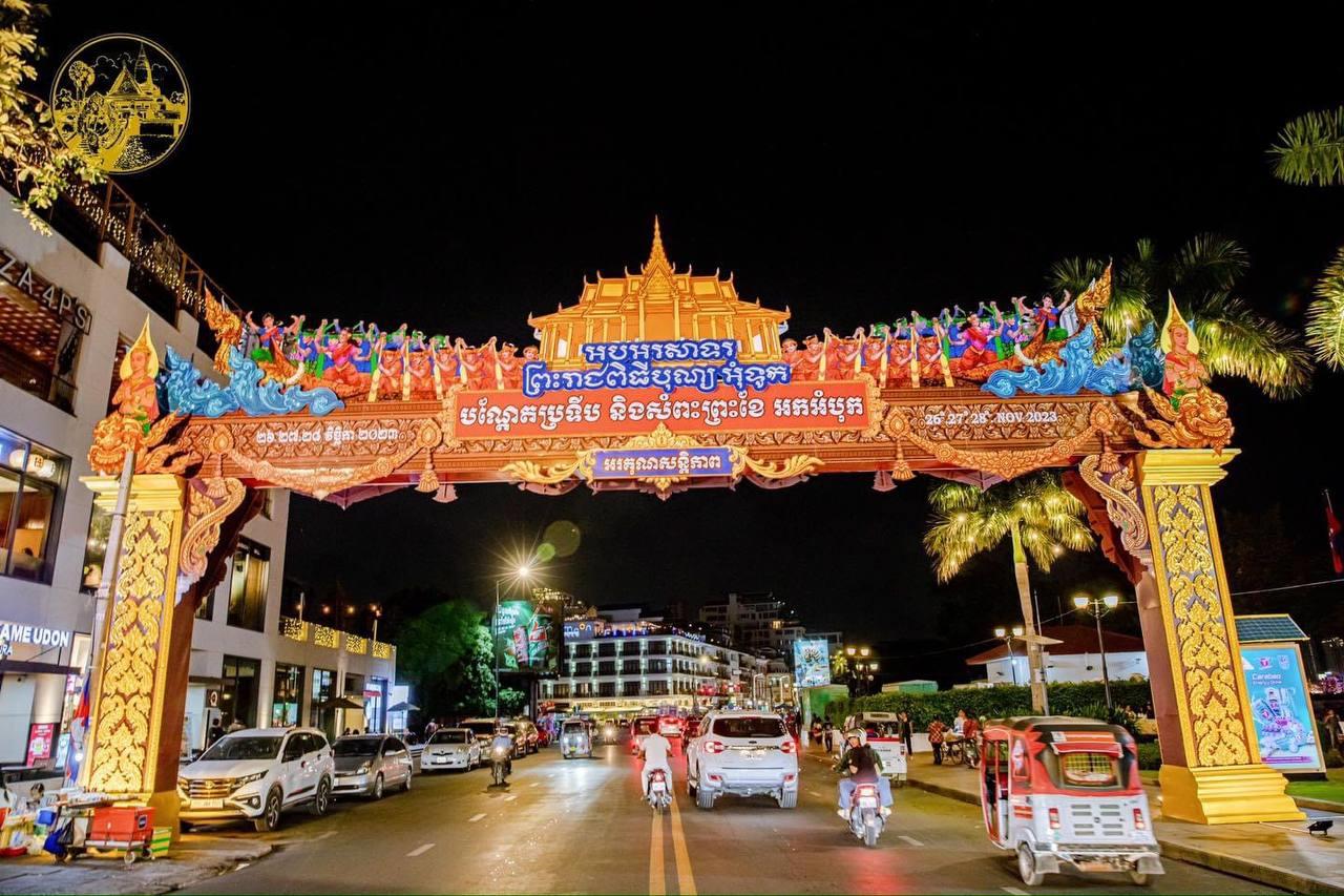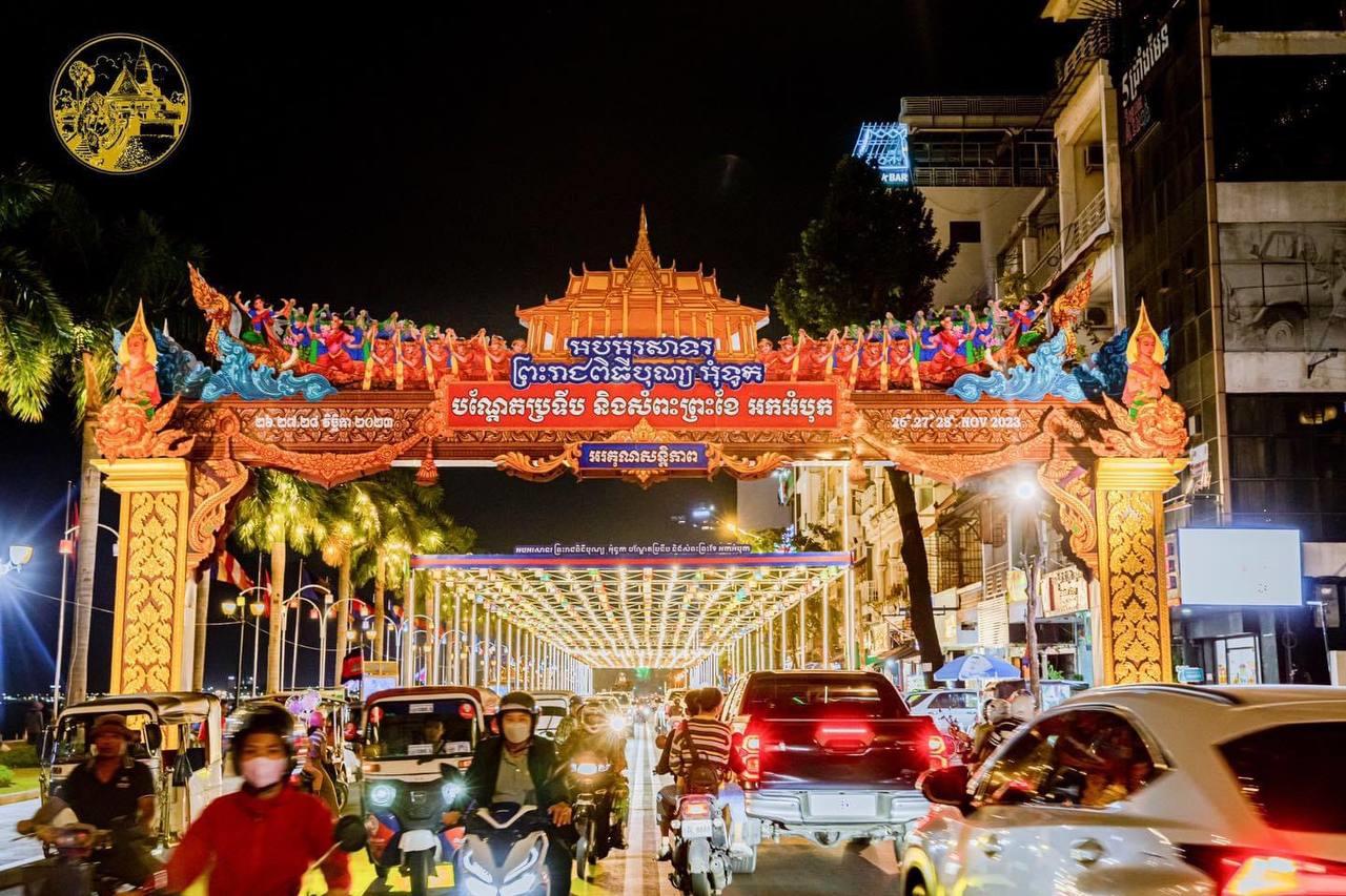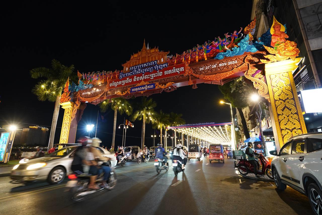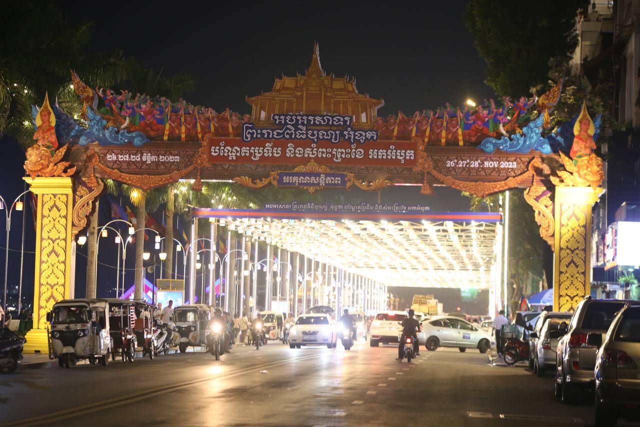 រាជធានីភ្នំពេញ រៀបចំតុបតែងខ្លោងទ្វារ និងបំភ្លឺភ្លើងពណ៌យ៉ាងស្រស់ស្អាត ដើម្បីត្រៀមអបអរព្រះរាជពិធីបុណ្យអុំទូក បណ្តែតប្រទីប និងអកអំបុក សំពះព្រះខែ