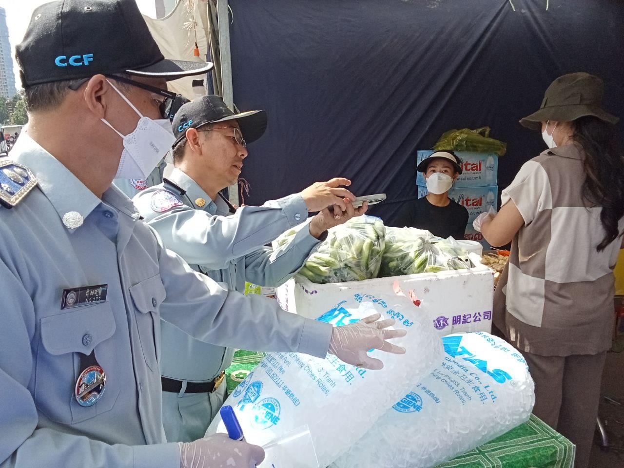 ជាក់ស្តែងនៅថ្ងៃទី២៦ ខែវិច្ឆិកា ឆ្នាំ២០២៣ ត្រូវនឹងថ្ងៃទី១ នៃការរៀបចំអបអរសាទរព្រះរាជពិធីបុណ្យអុំទូក បណ្តែតប្រទីប និងសំពះព្រះខែ អកអំបុក មន្ត្រីជំនាញរបស់អគ្គនាយកដ្ឋានការពារអ្នកប្រើប្រាស់ កិច្ចការប្រកួតប្រជែង និងបង្ក្រាបការក្លែងបន្លំ «ក.ប.ប.» សហការជាមួយសាខា ក.ប.ប. រាជធានីភ្នំពេញ មន្ទីរពាណិជ្ជកម្មរាជធានីភ្នំពេញ បាននាំយករថយន្តពិសោធន៍ចល័តផ្នែកម្ហូបអាហារ ចុះត្រួតពិនិត្យ និងយកសំណាកគំរូ ទំនិញម្ហូបអាហារ ចំនួន៣៨មុខ រួមមាន៖ បន្លែ ផ្លែឈើ គ្រឿងសមុទ្រ ត្រីងៀត សាច់ក្រក គុយទាវ មី សាច់មាន់ស្លាបមាន់អាំង ប្រហិត ជ្រក់ ជាដើម ដើម្បីវិភាគរកសារធាតុគីមីហាមឃាត់ និងសំណល់ថ្នាំកសិកម្ម ដែលប៉ះពាល់ដល់សុខភាពប្រជាពលរដ្ឋដែលជាអ្នកប្រើប្រាស់ វិភាគនៅនឹងកន្លែងជាក់ស្តែងក្នុងរថយន្តពិសោធន៍។