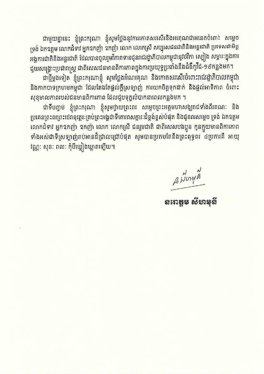 (ភ្នំពេញ)៖ ព្រះករុណា ព្រះបាទ សម្តេចព្រះបរមនាថ នរោត្តម សីហមុនី ព្រះមហាក្សត្រនៃព្រះរាជាណាចក្រកម្ពុជា បានបង្ហាញទឹកព្រះរំភើប និងស្ងើចសរសើរចំពោះគោលនយោបាយជាតិគាំពារសង្គម ដាក់ចេញដោយសម្តេចមហាបវរធិបតី ហ៊ុន ម៉ាណែត នាយករដ្ឋមន្ត្រីកម្ពុជា។