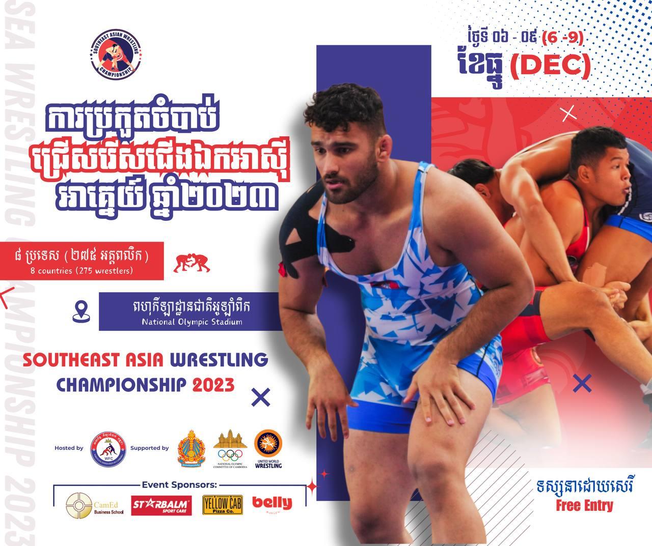 (ភ្នំពេញ)៖ កម្ពុជានឹងបន្ដធ្វើម្ចាស់ផ្ទះរៀបចំការប្រកួតកីឡាចំបាប់ជ្រើសរើសជើងឯកអាស៊ីអាគ្នេយ៍ ឆ្នាំ២០២៣ ចាប់ពីថ្ងៃទី០៦-០៩ ខែធ្នូសប្ដាហ៍នេះ នៅពហុកីឡដ្ឋានជាតិអូឡាំពិក រាជធានីភ្នំពេញ តបតាមការស្នើសុំរបស់បណ្ដាប្រទេសក្នុងតំបន់ បន្ទាប់ពីមើលឃើញកម្ពុជាបានបំពេញតួនាទីយ៉ាងល្អ ក្នុងនាមម្ចាស់ផ្ទះព្រឹត្តិការណ៍អន្ដរជាតិនាពេលកន្លងមក ។