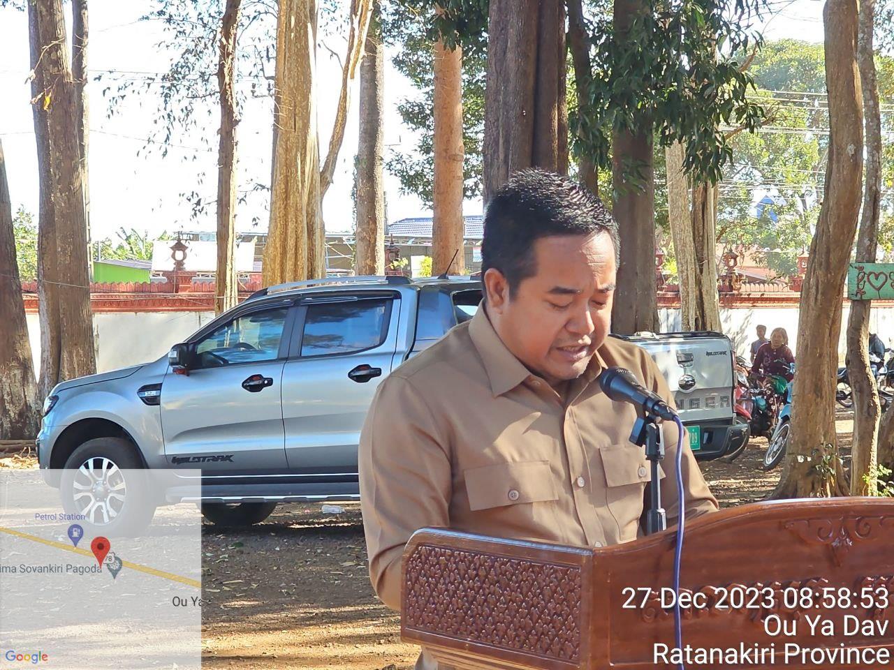 (រតនគិរី)៖ លោក ញ៉ែម សំអឿន អភិបាលខេត្តរតនគិរី អមដំណើរដោយអភិបាលរងខេត្ត លោក លោកស្រី ប្រធានមន្ទីរអង្គភាពជុំវិញខេត្តលោកមេបញ្ជាការ មេបញ្ជាការរងកងកម្លាំងទាំបី នៅព្រឹកថ្ងៃទី២៧ ខែធ្នូ ឆ្នាំ២០២៣ បាននាំយកអំណោយជាស្បៀអាហាររបស់រាជរដ្ឋាបាលចែកជូនគ្រួសារមានជីវភាពខ្វះខាតជួបការលំបាក ចាស់ជរា ជនពិការ ស្ត្រីមេម៉ាយ កុមារកំព្រាចំនួន១៧០គ្រួសារនៅស្រុកអូរយ៉ាដាវ។