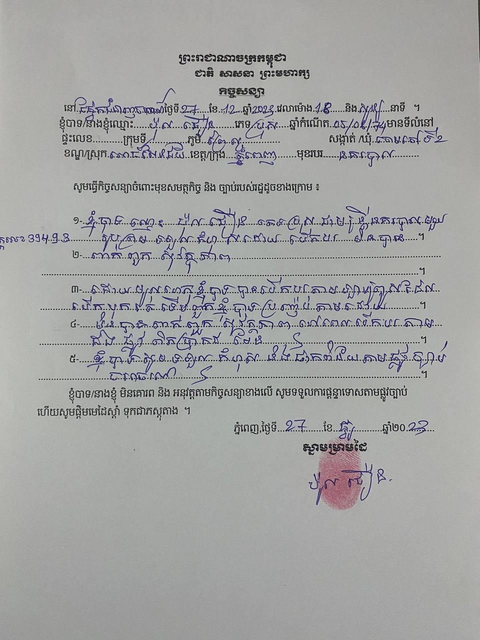 យោងតាមយោងកិច្ចសន្យា បានឲ្យដឹងថា មន្ដ្រីនគរបាលចរាចរណ៍ទាំង២នាក់នេះ ទីមួយ៖ មានឈ្មោះ ប៉ុល ជឿន ភេទប្រុស រស់នៅភូមិព្រៃស សង្កាត់ចោមចៅទី២ ខណ្ឌពោធិ៍សែនជ័យ រាជធានីភ្នំពេញ និងទីពីរ៖ មានឈ្មោះ ជា តឿ ភេទប្រុស រស់នៅភូមិវត្ដស្លែង សង្កាត់ពងទឹក ខណ្ឌដង្កោ រាជធានីភ្នំពេញ។