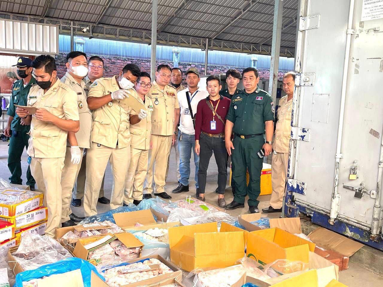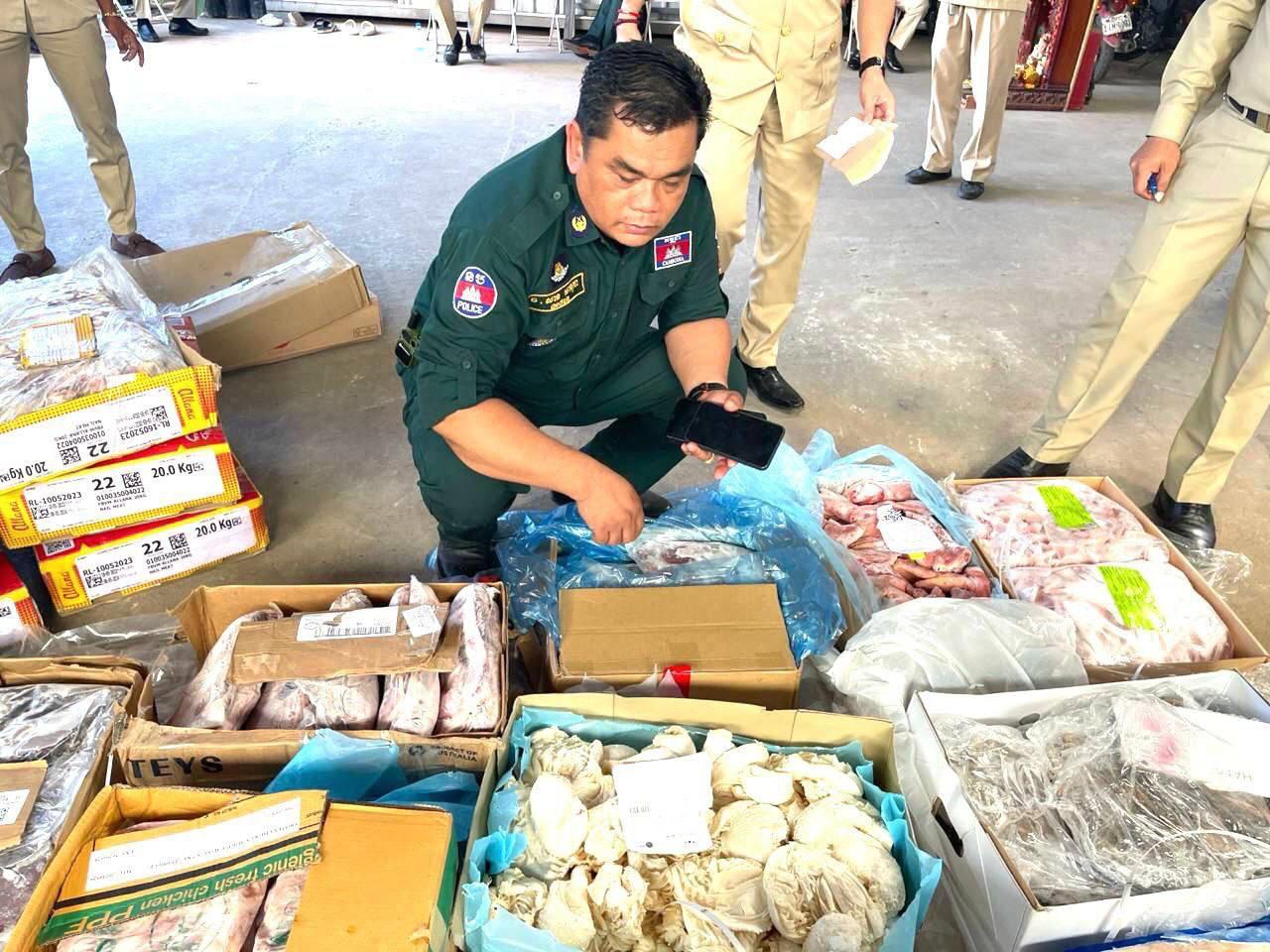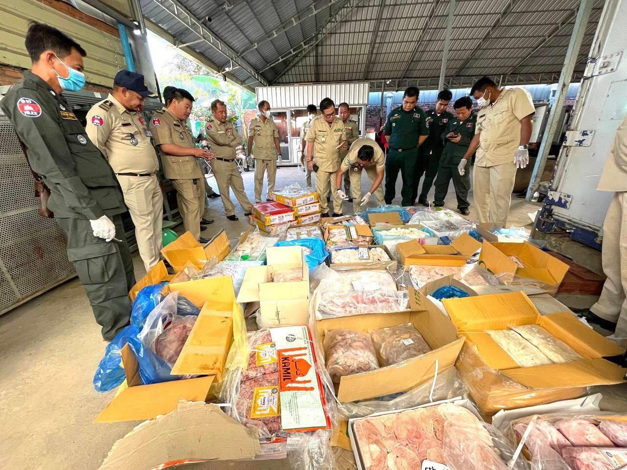 (ភ្នំពេញ)៖ កម្លាំងជំនាញនាយកដ្ឋាននគរបាលប្រឆាំងបទល្មើសសេដ្ឋកិច្ច សហការជាមួយមន្ត្រីជំនាញនាយកដ្ឋានសុខភាពសត្វ និងសុខភាពសាធារណៈបសុព្យាបាល និងអាជ្ញាធរមូលដ្ឋាន ក្រោមការដឹកនាំសម្របសម្រួលនីតិវិធីផ្ទាល់ពីលោកព្រះរាជអាជ្ញារង ម៉ុត ដារ៉ា បានចុះបង្រ្កាបករណីសន្និធិ នាំចូល ចែកចាយសាច់គោ សាច់ជ្រូក សាច់ទា សាច់មាន់ និងគ្រឿងក្នុងបង្កក ចំនួន០២ទីតាំង នៅថ្ងៃទី២៦ ខែធ្នូ ឆ្នាំ២០២៣។