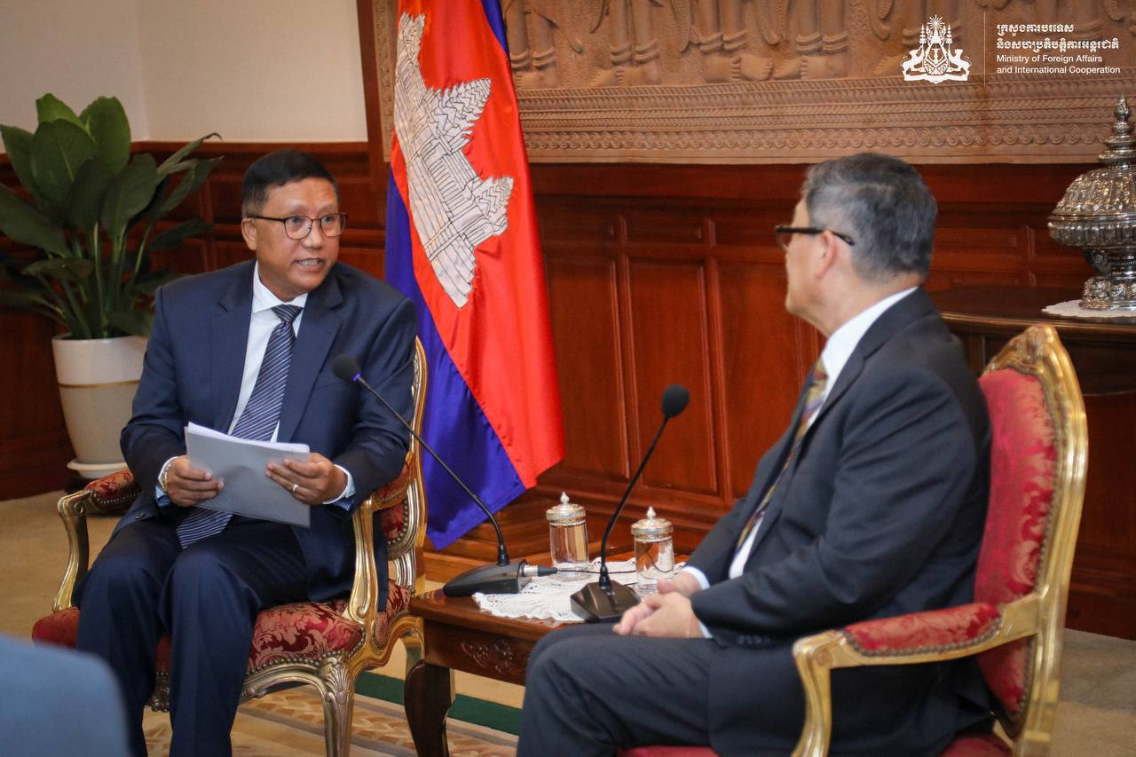 (ភ្នំពេញ)៖ លោក សុខ ចិន្តាសោភា ឧបនាយករដ្ឋមន្ត្រី និងជារដ្ឋមន្ត្រីការបរទេស និងសហប្រតិបត្តិការអន្តរជាតិ បានអបអរសាទរ លោក Thit Linn Ohn ឯកអគ្គរដ្ឋទូតនៃសាធារណរដ្ឋសហភាពមីយ៉ាន់ម៉ាប្រចាំកម្ពុជា ដែលចប់អាណត្តិបេសកកម្មការទូតនៅកម្ពុជាប្រកបដោយជោគជ័យ ក្នុងឱកាសដែល លោកឯកអគ្គរដ្ឋទូត ចូលជួបសម្ដែងការគួរសមនិងជម្រាបលា នៅថ្ងៃទី២៦ ខែធ្នូ ឆ្នាំ២០២៣។