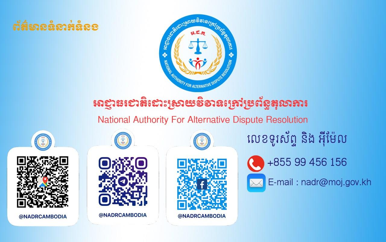 បងប្អូនប្រជាពលរដ្ឋអាចទំនាក់ទំនងអាជ្ញាធរជាតិដោះស្រាយវិវាទក្រៅប្រព័ន្ធតុលាការ តាមរយៈ៖