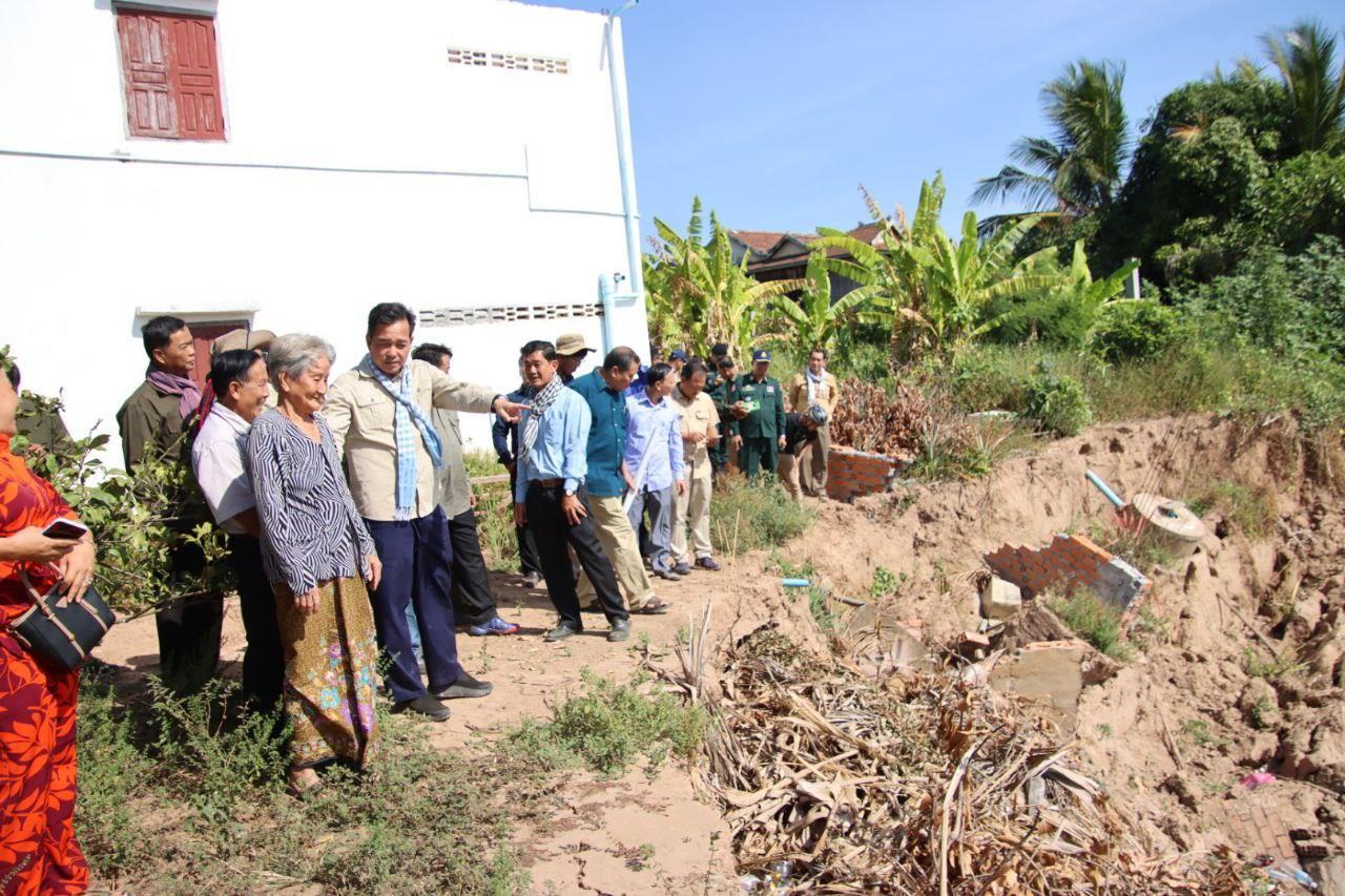 បាក់ច្រាំងទន្លេ ធ្វើឲ្យប៉ះពាល់ដល់ប្រជាពលរដ្ឋជាង៤០គ្រួសារ ក្នុងស្រុកស្ទឹងត្រង់, អភិបាលខេត្តចុះពិនិត្យផ្ទាល់ ដើម្បីជួយអន្តរាគមន៍