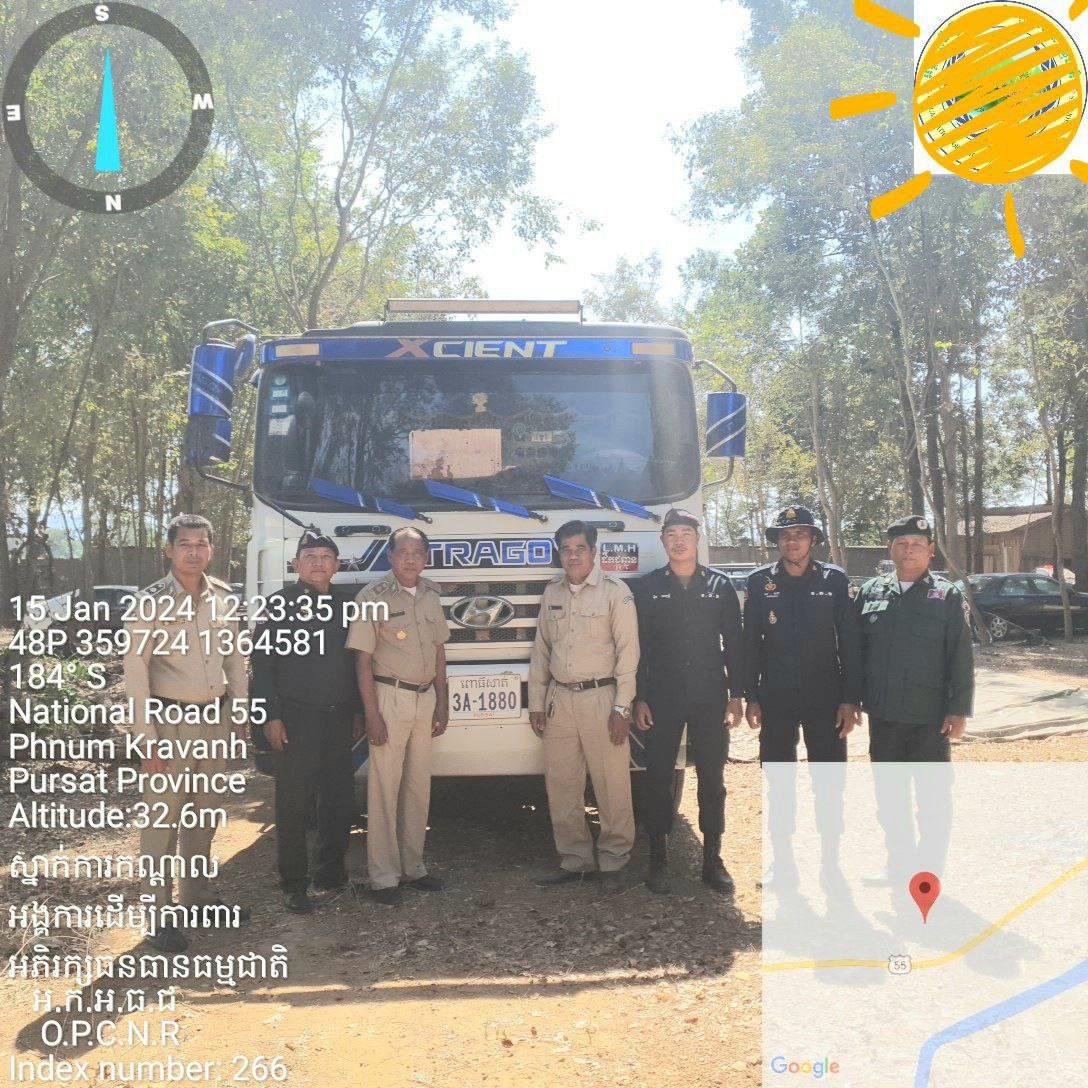 ប្រភពពីសមត្ថកិច្ច បានឱ្យដឹងទៀតថា រថយន្តដឹកដំឡូងបង្កប់ឈើត្រូវបានបង្រ្កាប ម៉ាកហ៊ីយ៉ាន់ដាយ ពណ៌សលាយត្រួយចេក ពាក់ស្លាកលេខ ពោធិ៍សាត់ 3A-1880 នៅលើកំណាត់ផ្លូវជាតិលេខ៥៥ ត្រង់ចំណុចស្ពានដំណាក់ឈើក្រំ ទល់មុខ (ផ្នែករដ្ឋបាលព្រៃឈើក្រវាញ) ស្ថិតនៅភូមិព្រែក៣ ឃុំសំរោង ស្រុកភ្នំក្រវាញ ខេត្តពោធិ៍សាត់។