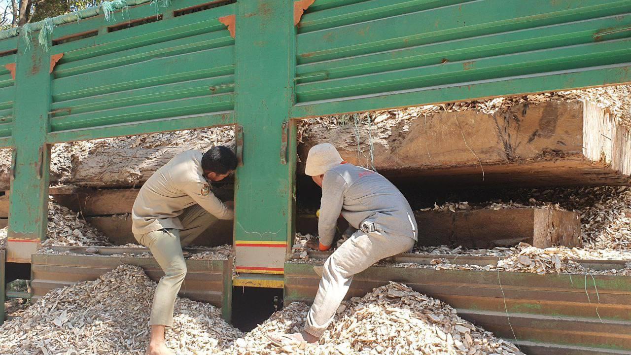 សមត្ថកិច្ចឃាត់រថយន្តដឹកដំឡូងមី កង្កប់សុទ្ធតែឈើសន្លឹកមុខកាត់ធំៗ