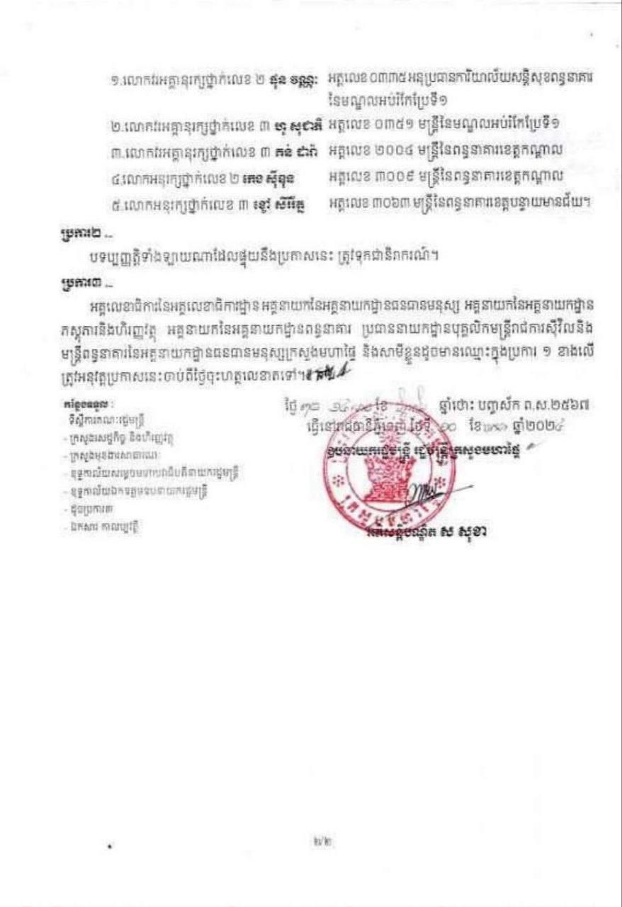 ខាងក្រោមនេះជាការប្រកាសរបស់ ឧបនាយករដ្ឋមន្រ្តី ស សុខា៖