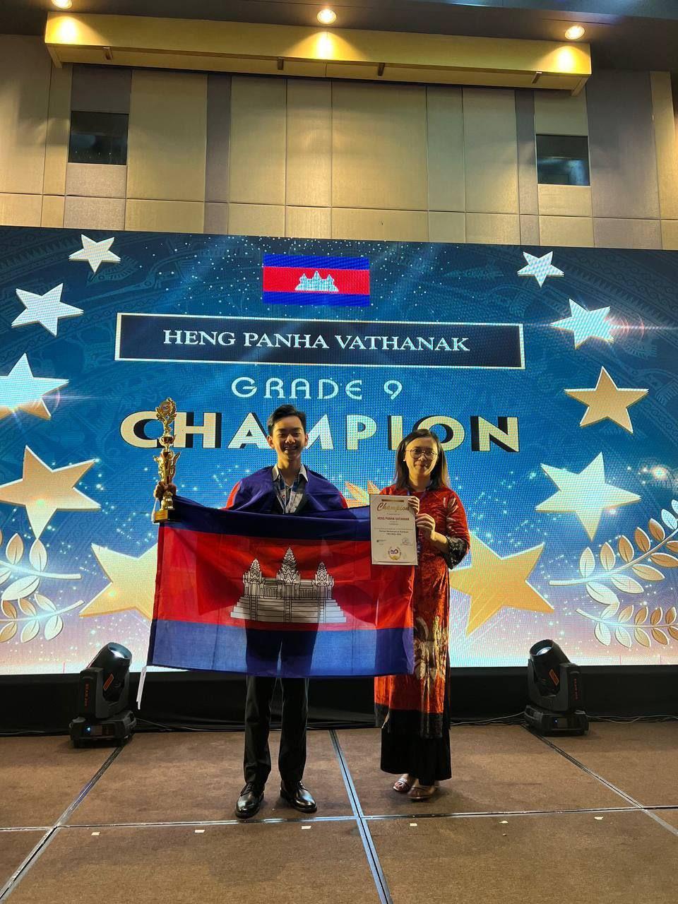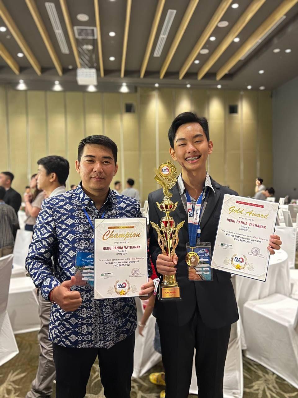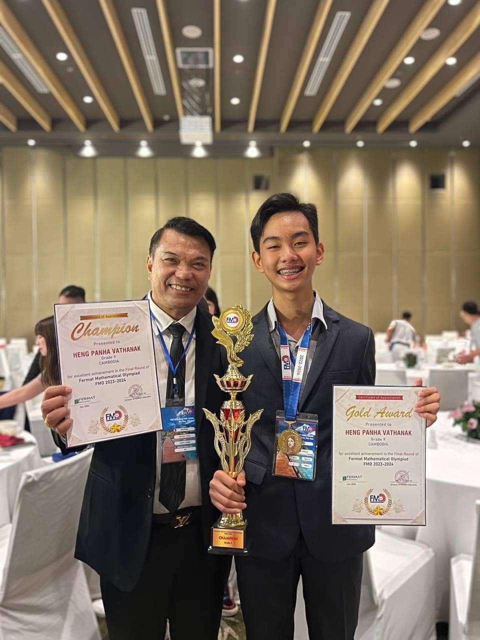 ១-Heng PanhaVathanak ទទួលបានមេដាយមាស និងពានជើងឯកគណិតវិទ្យាអន្តរជាតិ